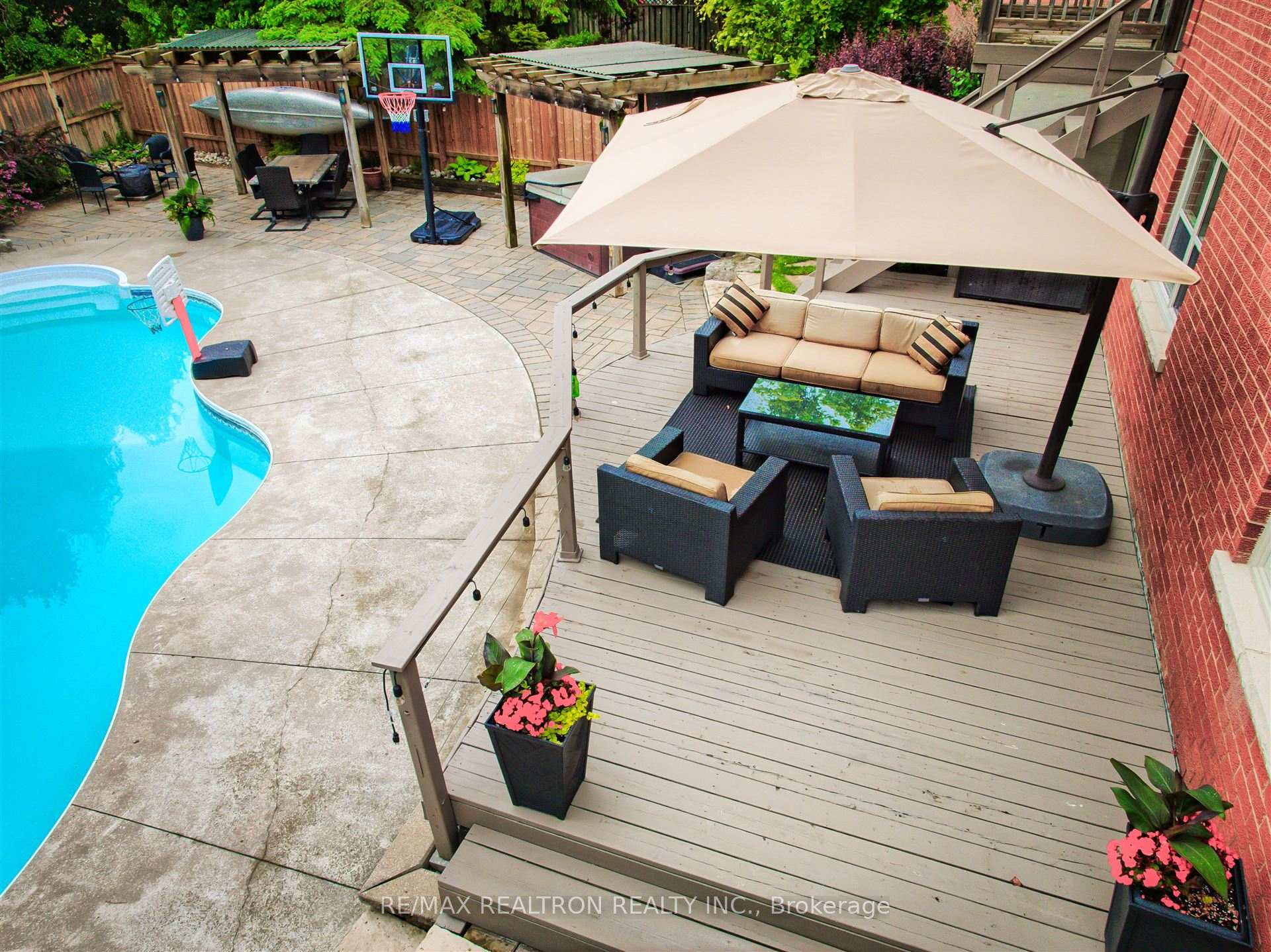 Almost 6,000 sqft of luxurious living space in this 2 storey home with finished walkout basement, 3 car garage & backyard oasis that includes saltwater pool, hot tub, patio, & pergola's. Some upgrades! Kitchen (2024), some windows (2023), hardwood floors, smooth ceilings on main & removal of wall between living room and dining room in 2015, new furnace (2016), patio stones, hot tub, pool heater (2016), CAC (2015). New Pool Liner (Oct/2025) & New Broadloom on 2nd Floor (Oct /2025) Listed by: Rocco Racioppo , Broker - RE/MAX Realtron Realty Inc., Brokerage