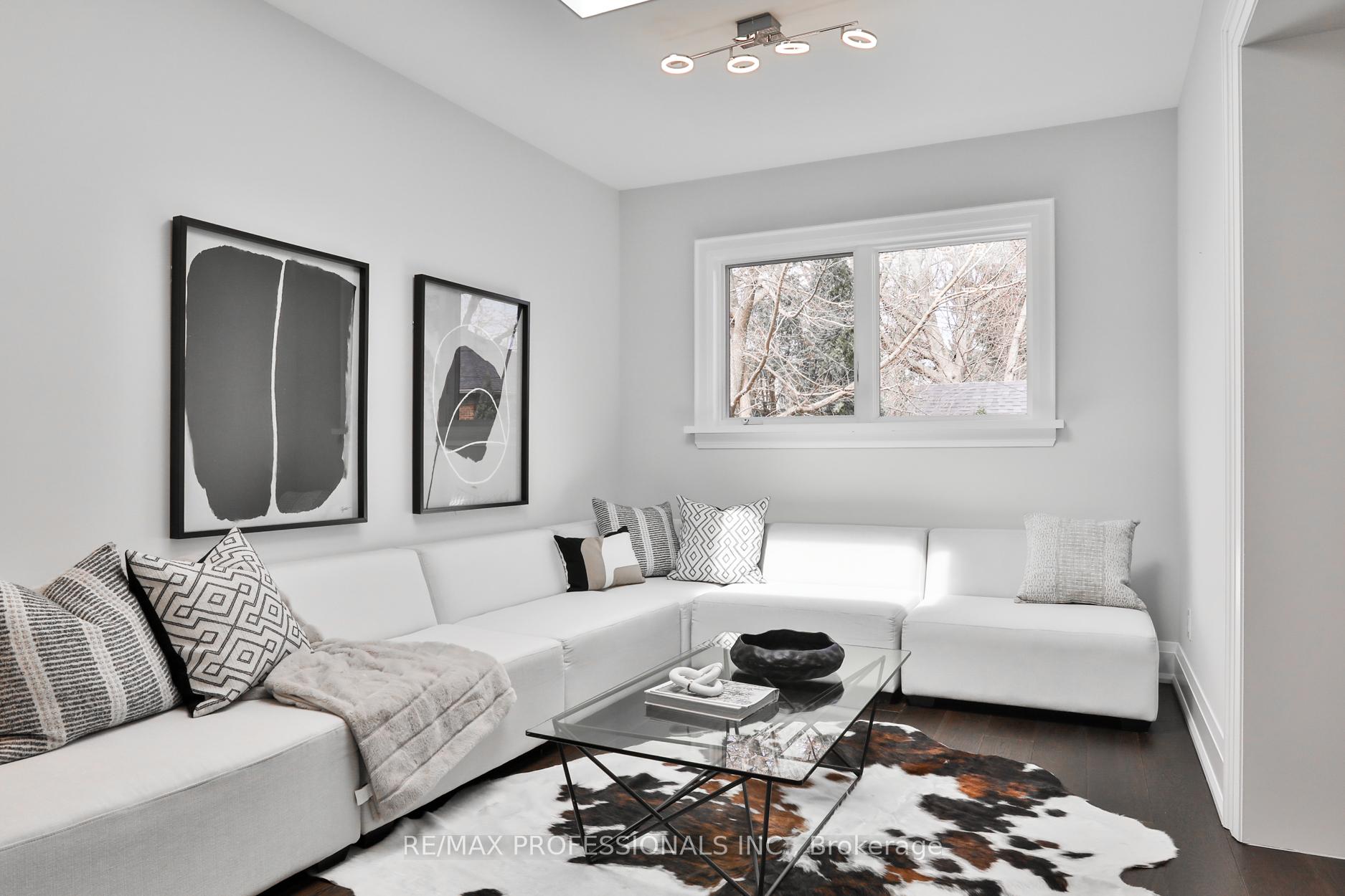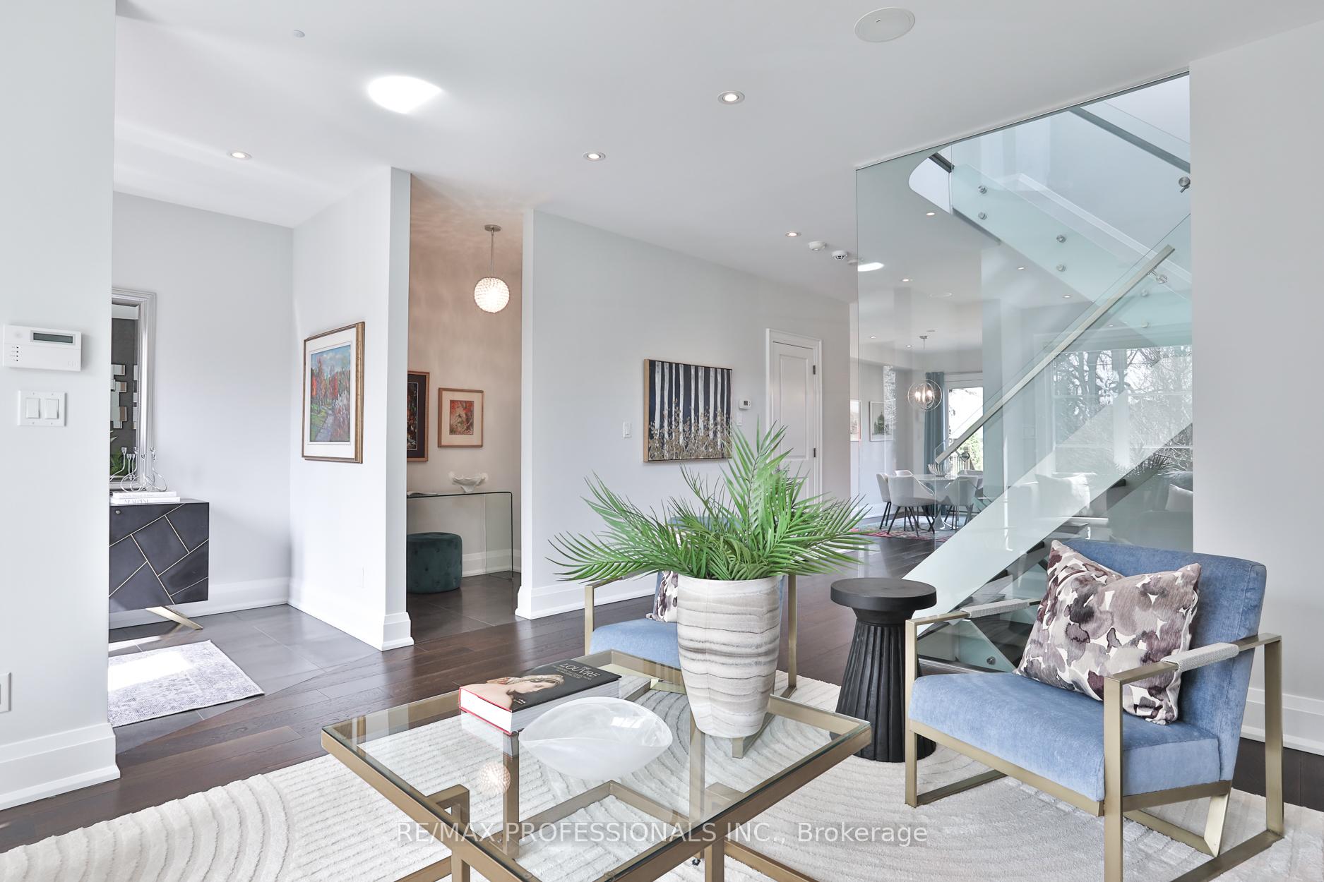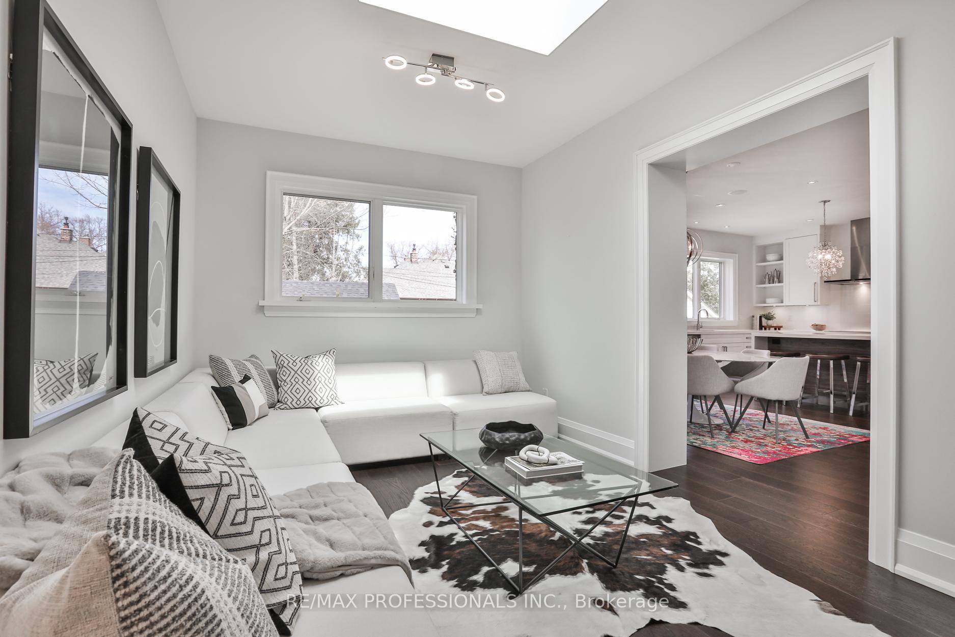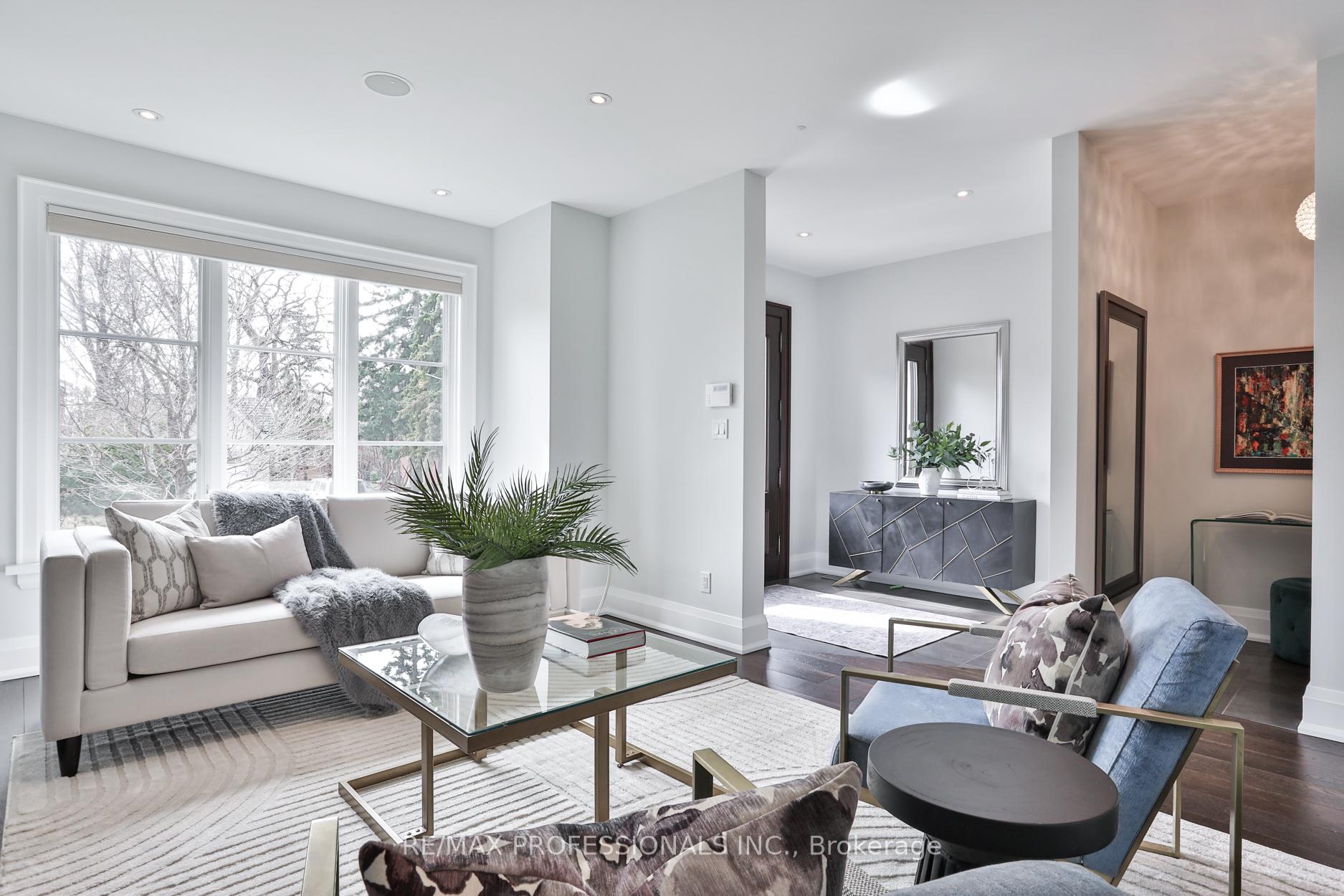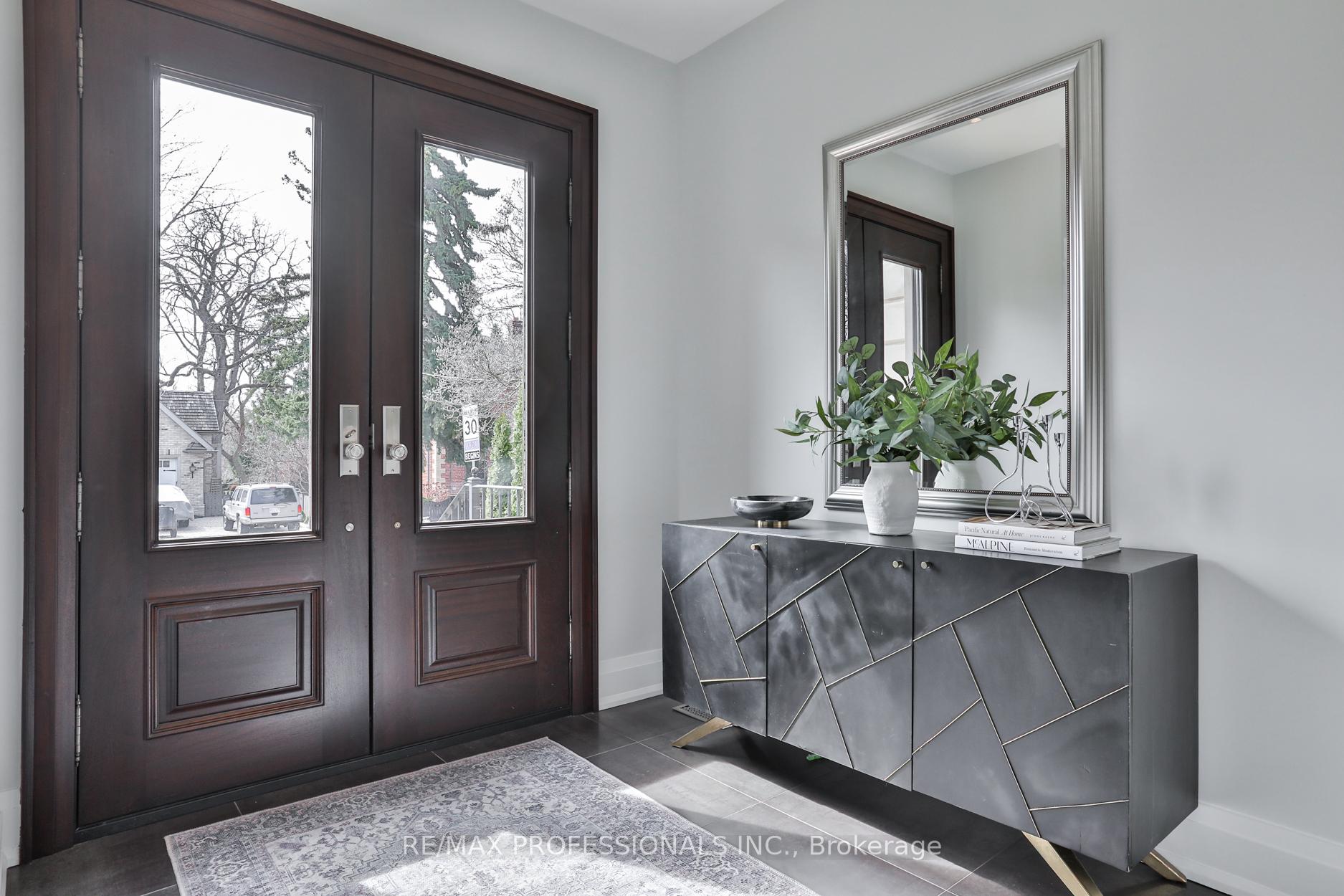 Nestled in the heart of Thompson Orchard Park, this sophisticated and stylish residence offers a seamless blend of contemporary design and timeless elegance. Step inside to a bright and welcoming foyer that sets the tone for the thoughtfully designed interior. The formal living room features a sleek gas fireplace, creating an inviting space for relaxing or entertaining. At the heart of the home, a chef's kitchen impresses with top-end integrated stainless steel appliances, a waterfall-edge centre island with breakfast bar, and an open flow to the dining area. French doors walk out to a private, landscaped yard complete with a deck and stone patio - perfect for outdoor gatherings. Adjacent to the kitchen, a sky-lit family room adds warmth and natural light, offering a comfortable everyday living space. Upstairs, the second level is anchored by a luxurious primary suite featuring dual double closets, a custom walk-in closet with organizers, and a sky-lit 5-piece ensuite bath. Two additional bedrooms and a beautifully finished 4-piece bath complete this level. The fully finished basement extends the living space with a cozy rec room and gas fireplace, a fourth bedroom, a stylish 3-piece bath, and a well-appointed laundry room. Ideally located just 5 minutes to the subway, Kingsway shops, cafes, and fine dining. Walk to top-rated schools and scenic parks, with an easy commute to downtown and the airports.