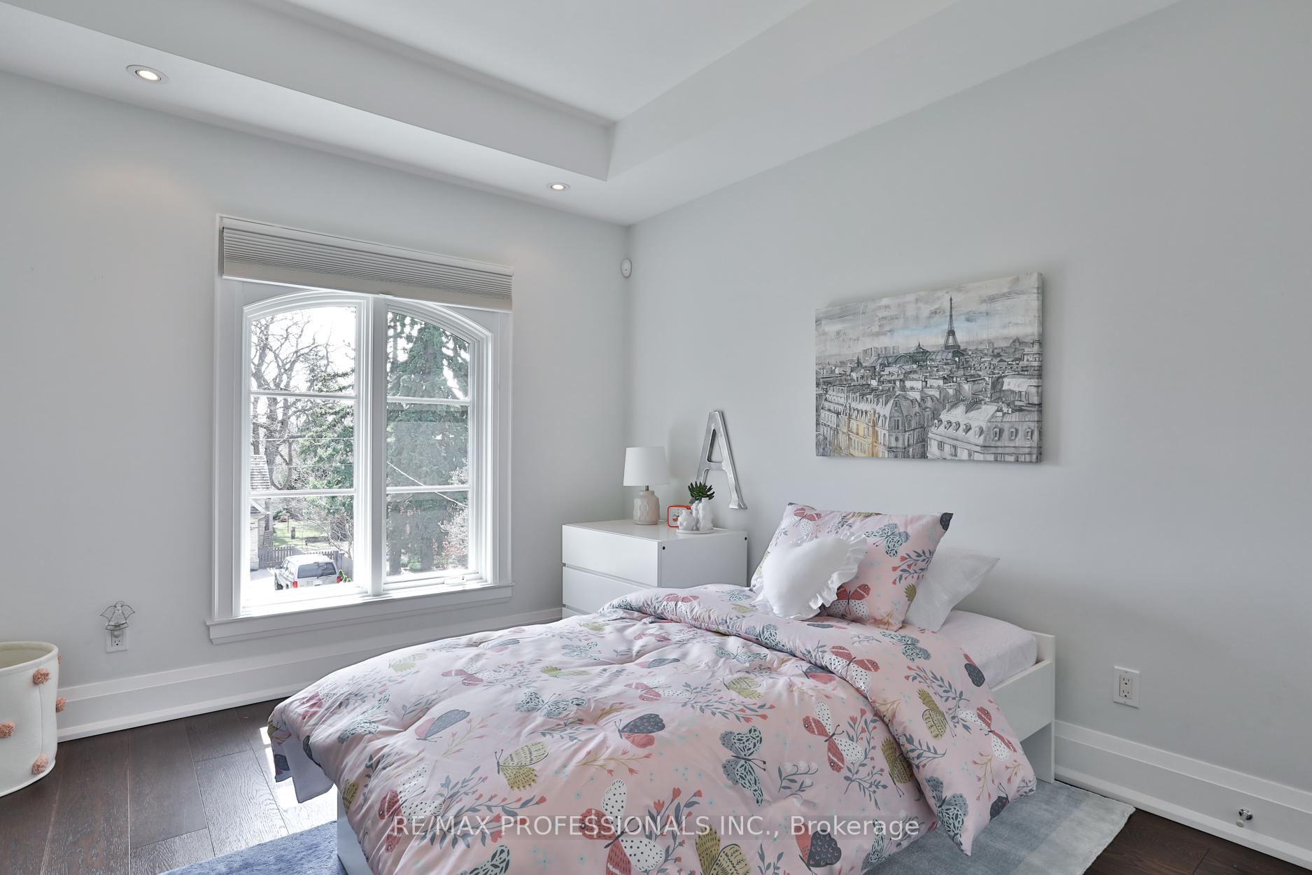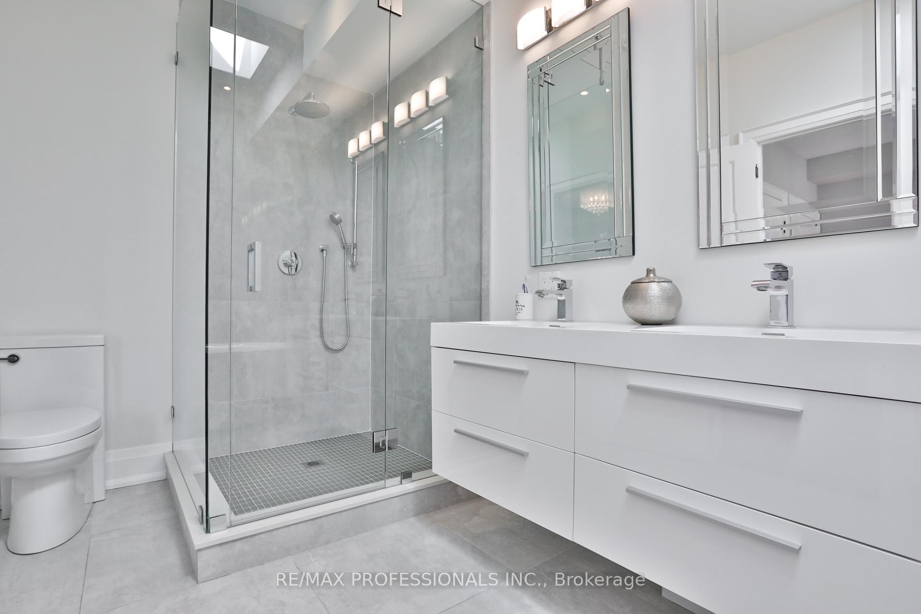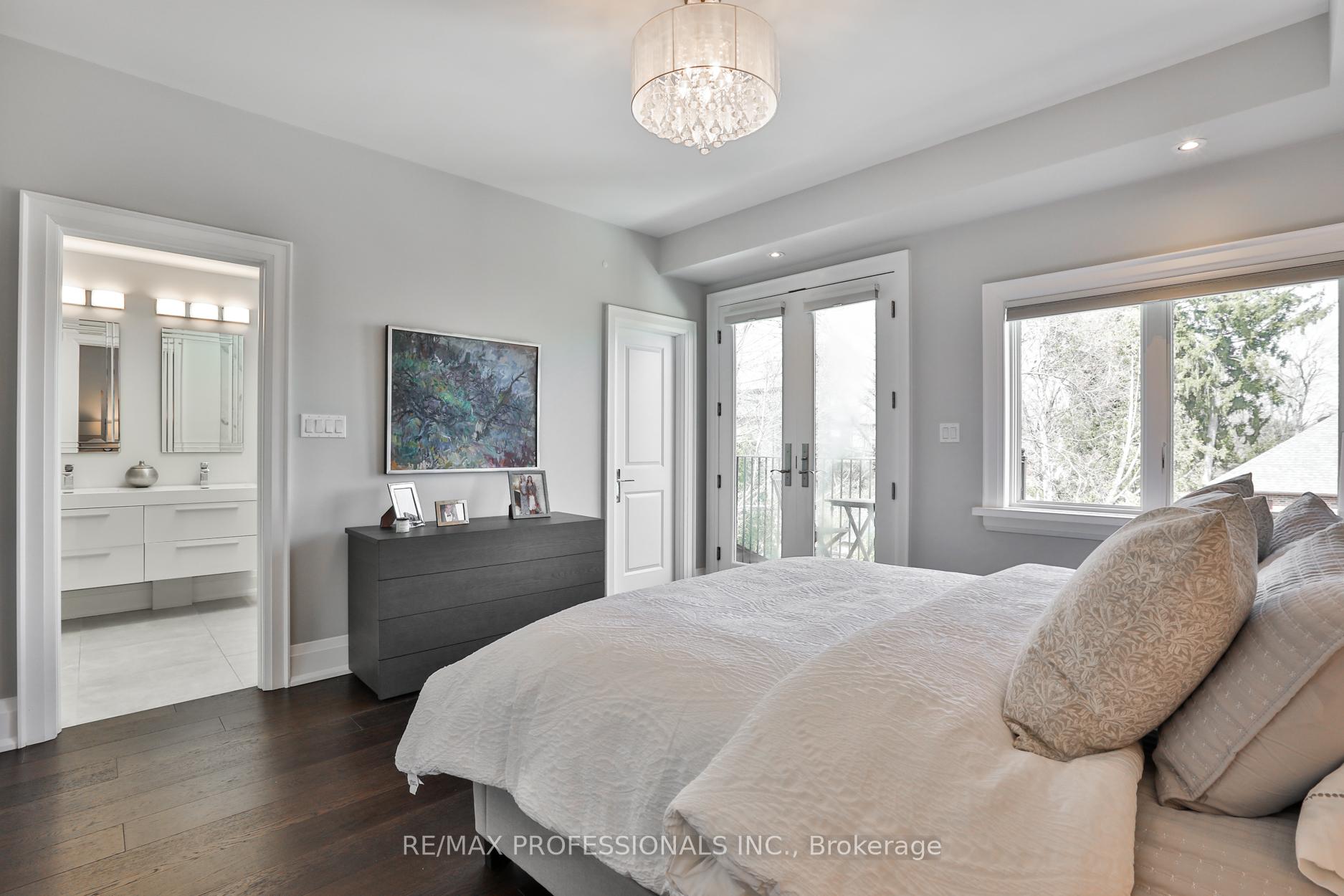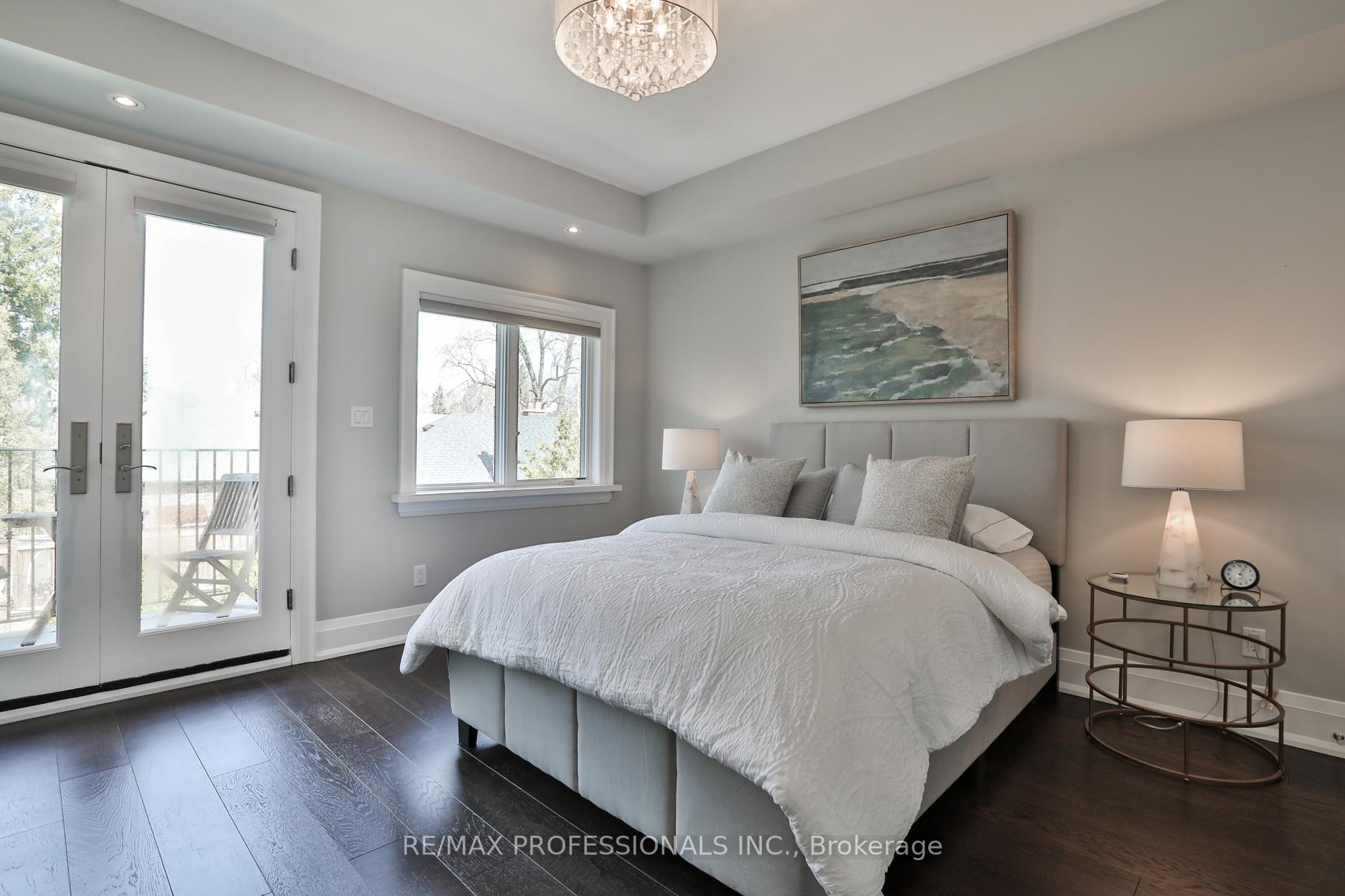 Nestled in the heart of Thompson Orchard Park, this sophisticated and stylish residence offers a seamless blend of contemporary design and timeless elegance. Step inside to a bright and welcoming foyer that sets the tone for the thoughtfully designed interior. The formal living room features a sleek gas fireplace, creating an inviting space for relaxing or entertaining. At the heart of the home, a chef's kitchen impresses with top-end integrated stainless steel appliances, a waterfall-edge centre island with breakfast bar, and an open flow to the dining area. French doors walk out to a private, landscaped yard complete with a deck and stone patio - perfect for outdoor gatherings. Adjacent to the kitchen, a sky-lit family room adds warmth and natural light, offering a comfortable everyday living space. Upstairs, the second level is anchored by a luxurious primary suite featuring dual double closets, a custom walk-in closet with organizers, and a sky-lit 5-piece ensuite bath. Two additional bedrooms and a beautifully finished 4-piece bath complete this level. The fully finished basement extends the living space with a cozy rec room and gas fireplace, a fourth bedroom, a stylish 3-piece bath, and a well-appointed laundry room. Ideally located just 5 minutes to the subway, Kingsway shops, cafes, and fine dining. Walk to top-rated schools and scenic parks, with an easy commute to downtown and the airports.