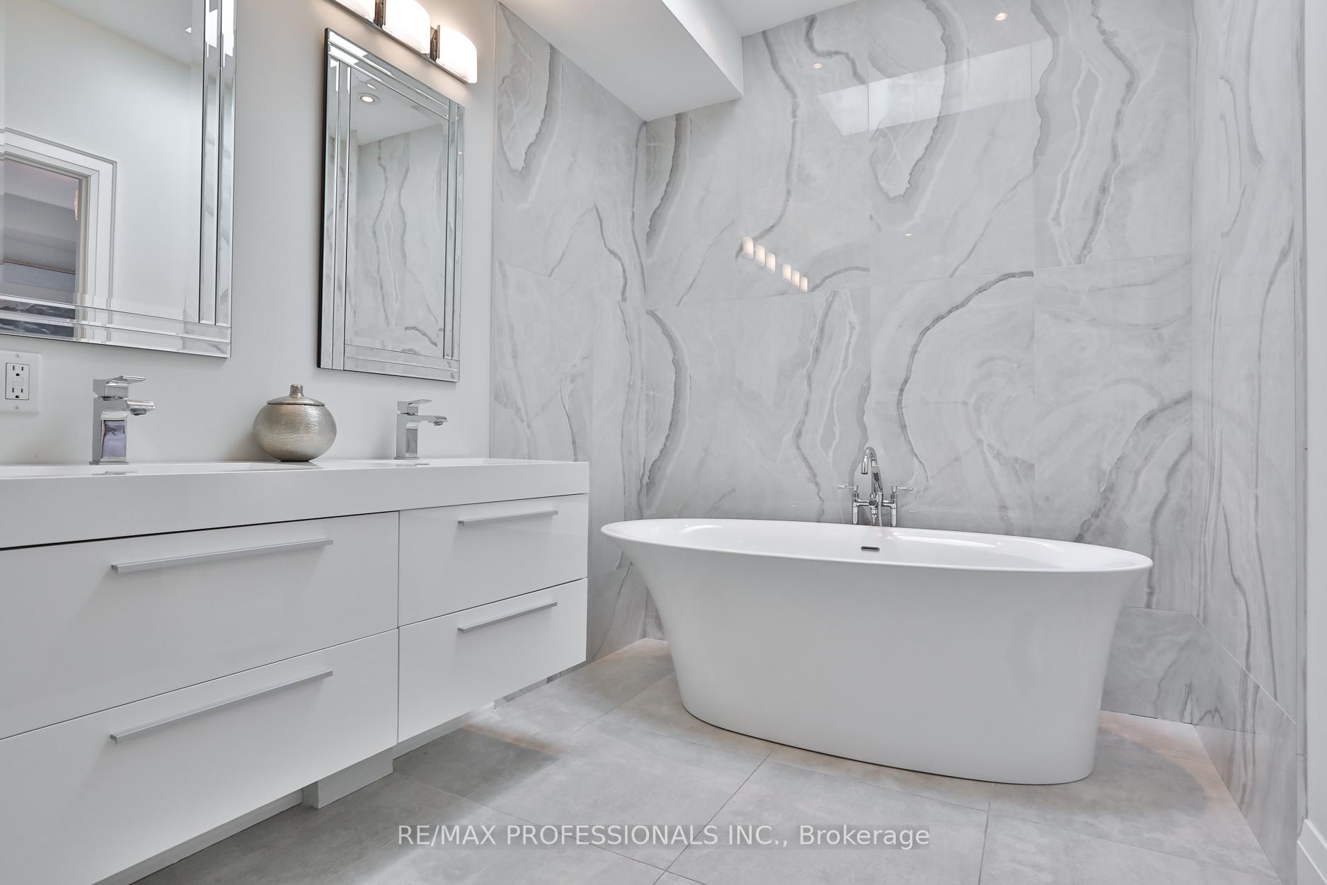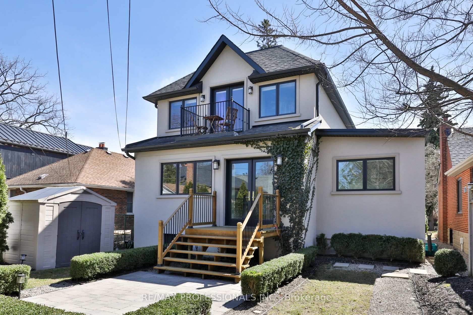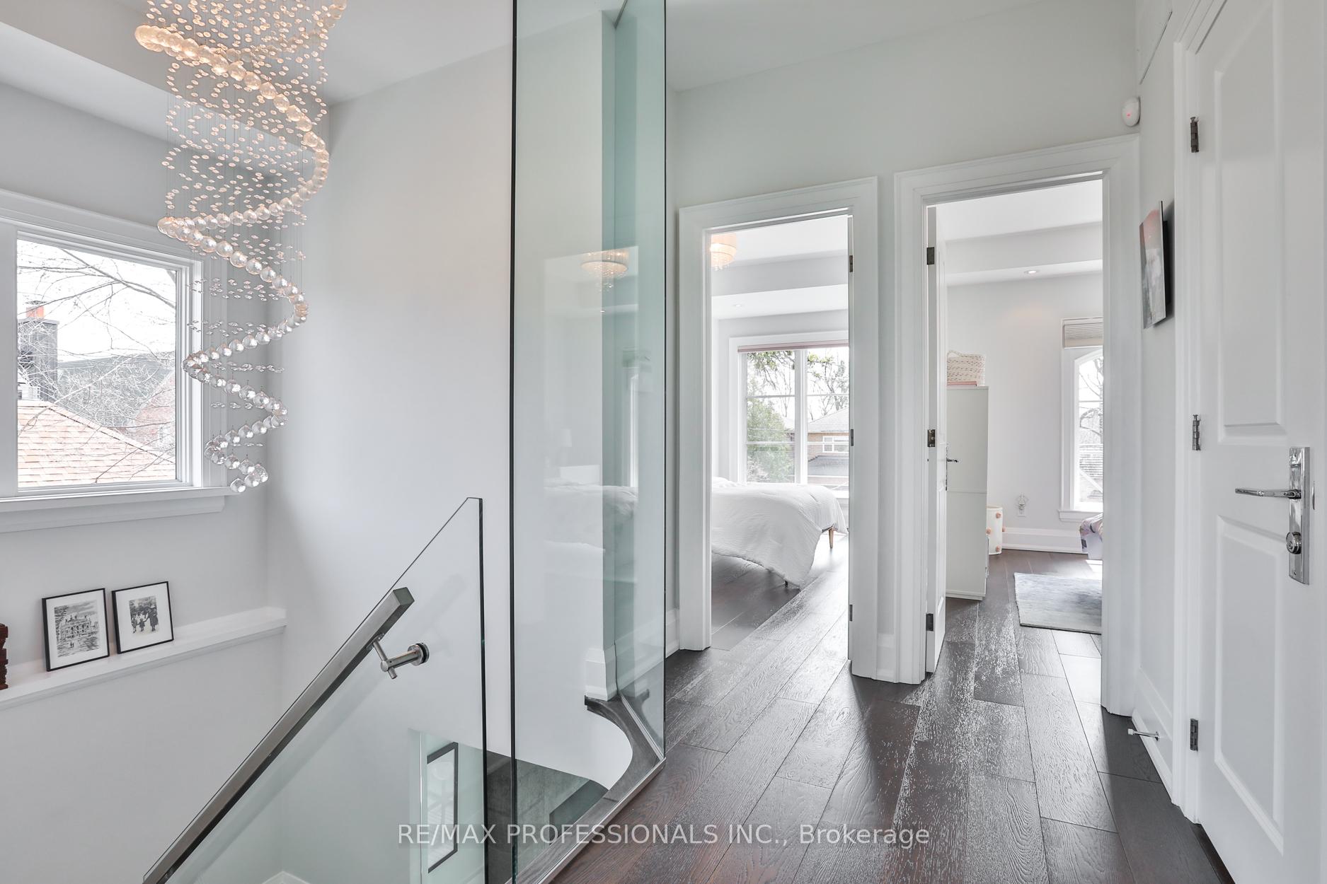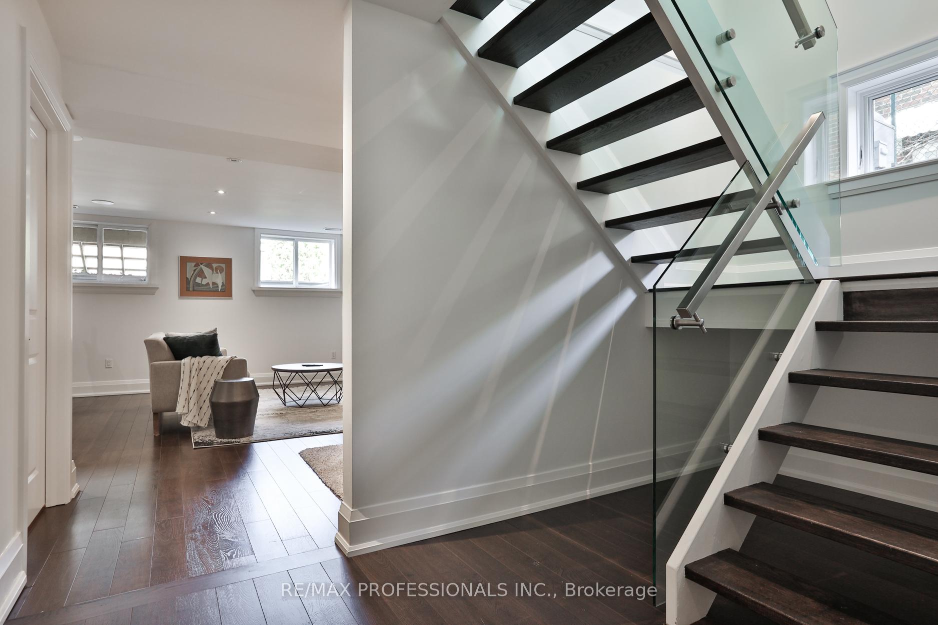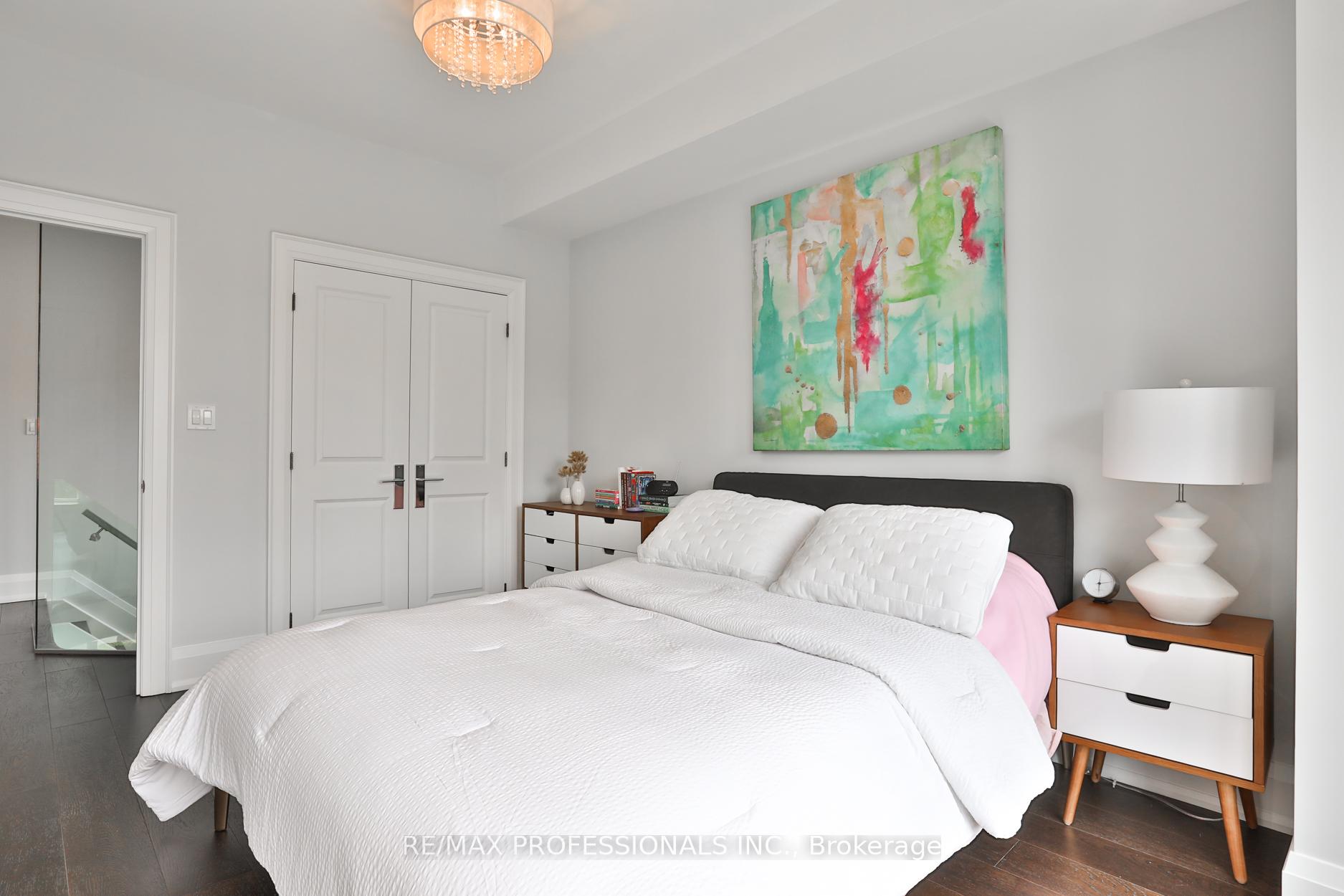 Nestled in the heart of Thompson Orchard Park, this sophisticated and stylish residence offers a seamless blend of contemporary design and timeless elegance. Step inside to a bright and welcoming foyer that sets the tone for the thoughtfully designed interior. The formal living room features a sleek gas fireplace, creating an inviting space for relaxing or entertaining. At the heart of the home, a chef's kitchen impresses with top-end integrated stainless steel appliances, a waterfall-edge centre island with breakfast bar, and an open flow to the dining area. French doors walk out to a private, landscaped yard complete with a deck and stone patio - perfect for outdoor gatherings. Adjacent to the kitchen, a sky-lit family room adds warmth and natural light, offering a comfortable everyday living space. Upstairs, the second level is anchored by a luxurious primary suite featuring dual double closets, a custom walk-in closet with organizers, and a sky-lit 5-piece ensuite bath. Two additional bedrooms and a beautifully finished 4-piece bath complete this level. The fully finished basement extends the living space with a cozy rec room and gas fireplace, a fourth bedroom, a stylish 3-piece bath, and a well-appointed laundry room. Ideally located just 5 minutes to the subway, Kingsway shops, cafes, and fine dining. Walk to top-rated schools and scenic parks, with an easy commute to downtown and the airports.