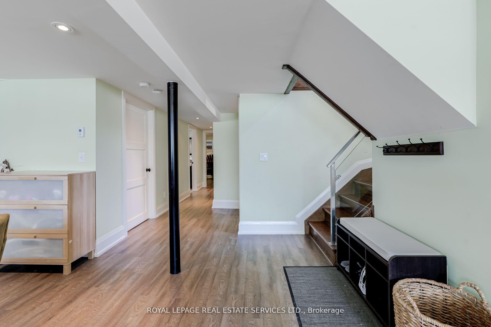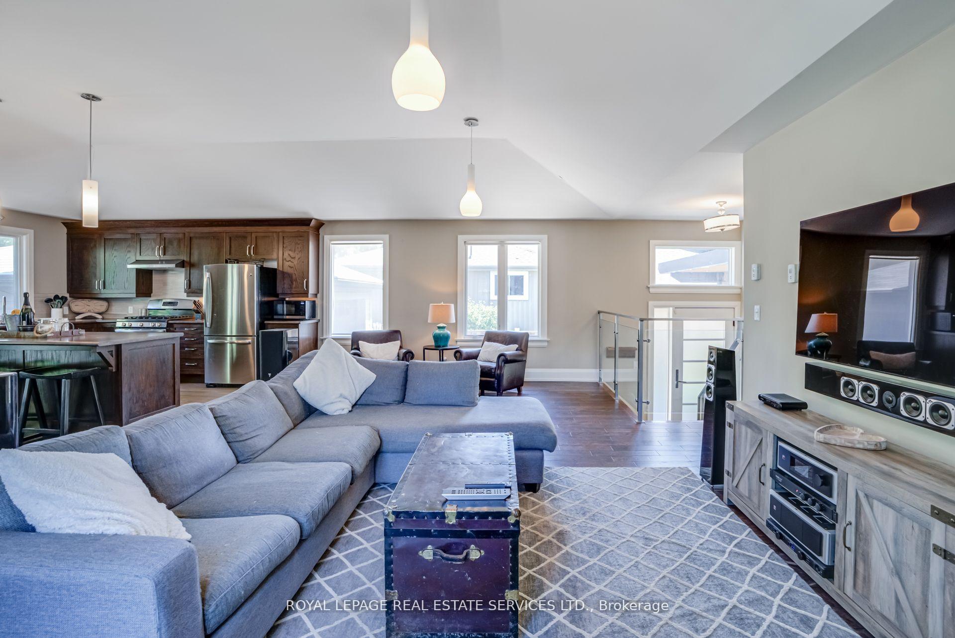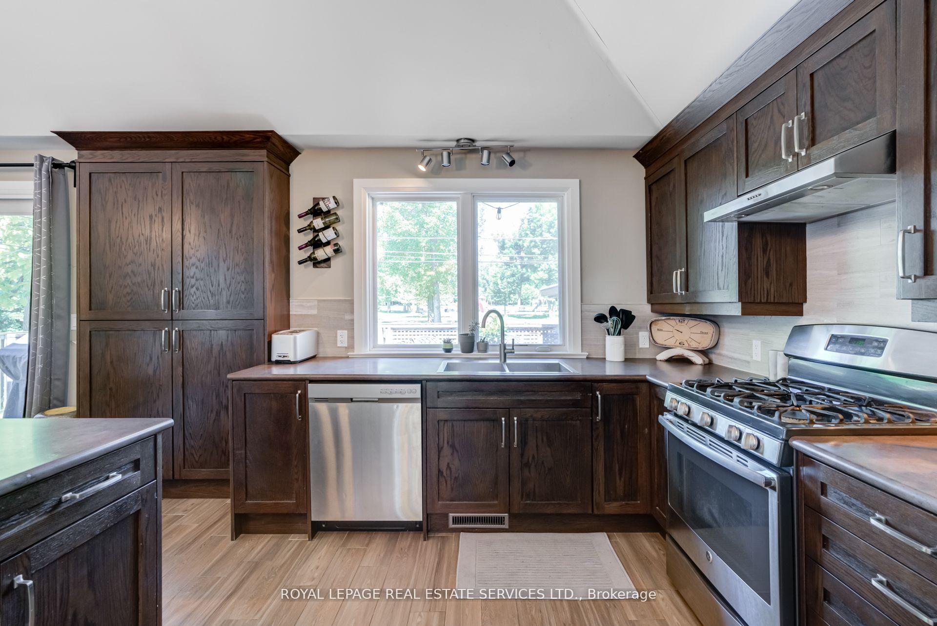 Welcome to this beautiful bungalow that has been thoughtfully renovated in gorgeous Guildwood Village. This modern family or executive bungalow has hardwood floors on the main floor. The open concept living room has a gas fireplace. The dining room opens onto a large back deck for family time or entertaining. The kitchen with stainless steel appliances and gas stove has an island overlooking the dining room- a chef's delight. There is a large coat closet by the front entrance. A 3-piece bath and 2 good size bedrooms, both with double closets complete this floor. The lower level has a large family room with south facing windows making it a light and bright living space. It has a gas fireplace for a cozy evening. There are 2 large storage closets in the family room. The adjacent laundry room also has a closet and there is a dedicated storage room on this floor. There is a 3rd bedroom is on this lower level. It has 2 double closets and is next to a 4-piece bath complete with heated floor. All windows on this lower level are above grade. There is a 1.5 car garage and there are 4 parking spaces in the private drive with a carport. The back yard is fully fenced and backs onto a park.