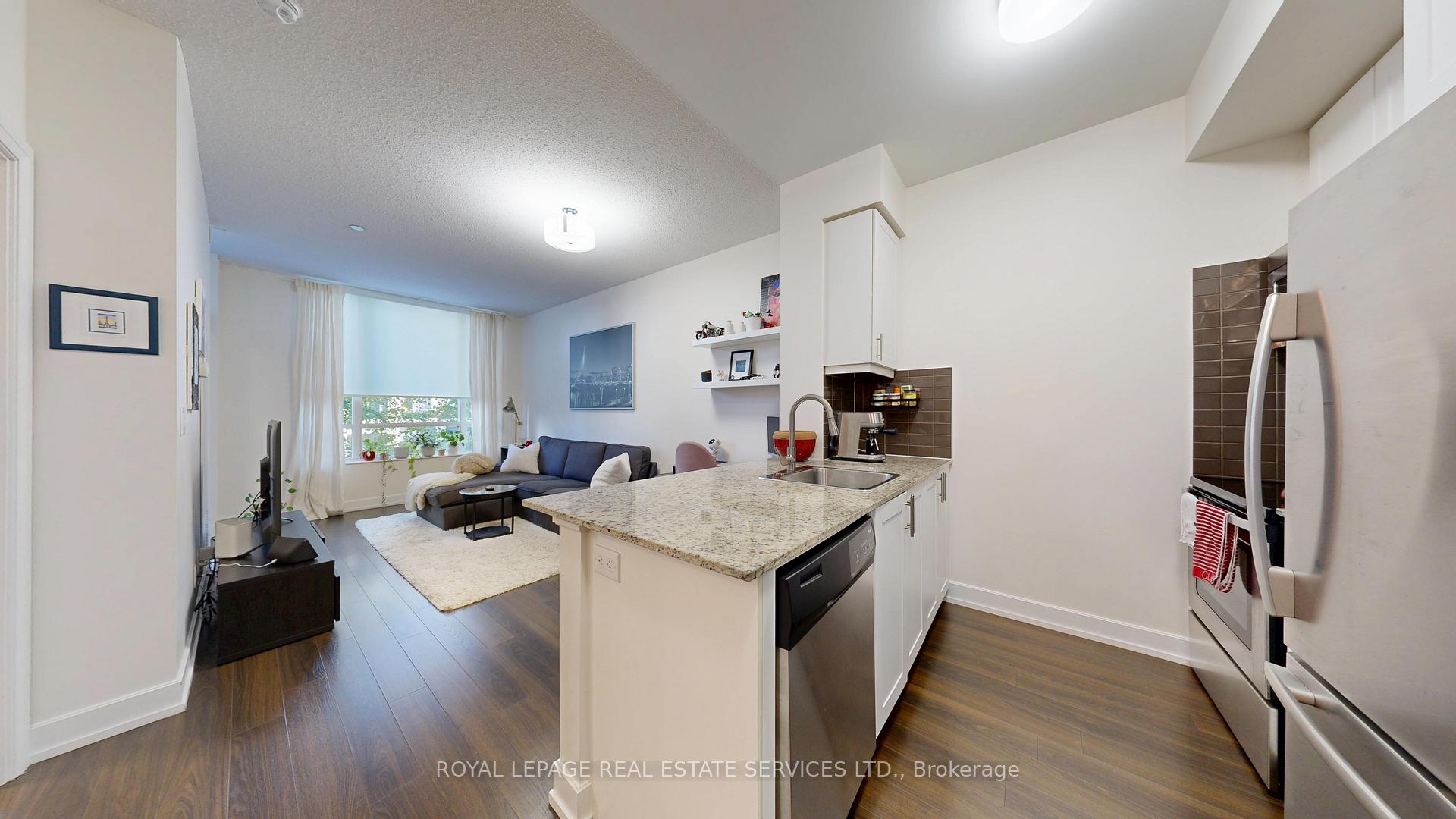 6 Eva Rd is located in the Prestigious Tridel-built West Village Community. Unit 216 is an Open Concept Condo with a flowing layout and open concept Living Area. The Kitchen sports a Breakfast Bar with Stainless Steel Appliances. There is a walk-out to the open Balcony with a charming view looking out onto trees and greenery, which also provide privacy. Amenities include 24-hour concierge, fitness center, indoor swimming pool with spa and steam room, party room, theatre, guest suites and Visitor Parking. Pets are allowed with restrictions. The Condo building is steps to parks, paths, basketball/tennis courts, Centennial Park and skating rinks. It offers transit access to Kipling and Islington Subways, Go Stn. and Sherway Gardens. Direct highway access via 427, 401, to Pearson International Airport, QEW and Downtown.