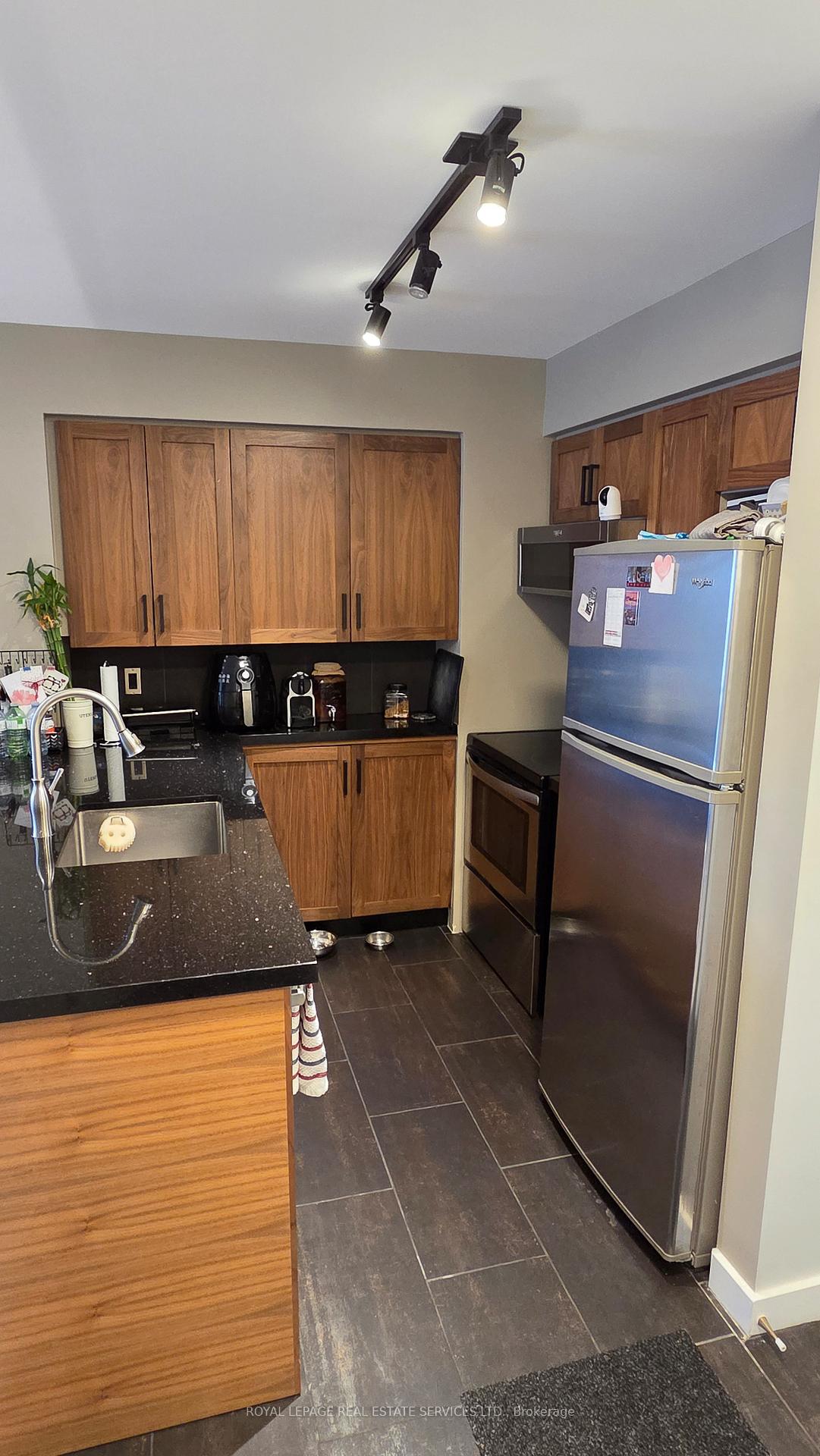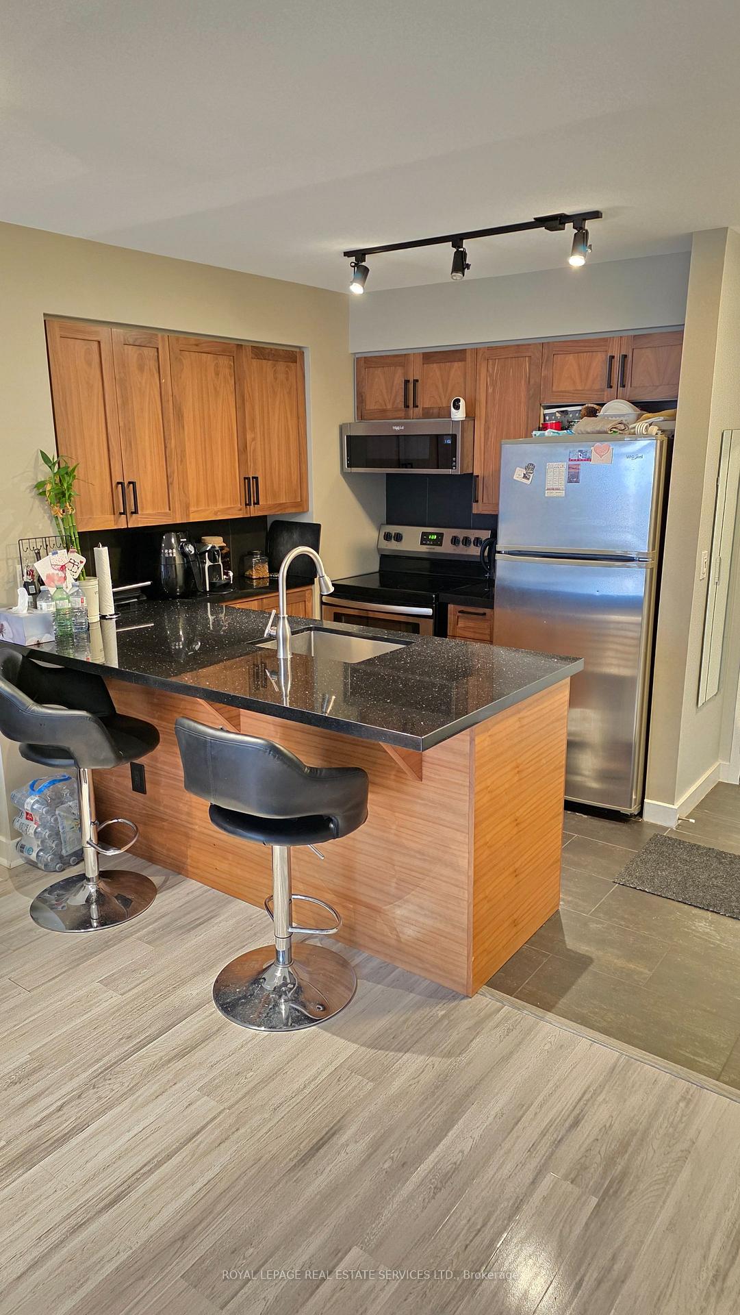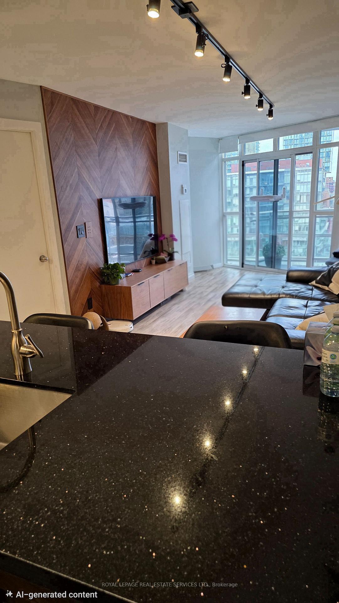 Beautifully updated 590 sq ft south facing 1 bedroom unit in Moss Park Downtown Toronto. The kitchen has been upgraded with new soft close cabinets, black granite counter top designed to add an eating area/breakfast bar for 2. Quality Stainless steel appliances, Frigidaire range, Whirlpool fridge, Whirlpool over the range microwave, Bosch dishwasher and LG stackable washer and dryer. Living room has stunning custom wood accent wall with built-in soft close cabinets and 65" Flat Screen Samsung TV included in the sale! Primary Bedroom, with walk-in closet, is large enough for a king bed and you still have space for a desk! Exceptionally well laid out suite for a single person or couple. South facing balcony with a city view, no buildings blocking your view! The unit also comes with a parking stall and locker, added value for the unit. If you do not use the parking stall or locker, you can rent them out! Unbeatable location and low maintenance fees which Include All Utilities!! Amenities include 24-hour concierge, exercise room, sauna, party room, guest suites and ample visitor parking. All of this in an unbeatable location, just steps to the Financial District, St. Lawrence Market, Distillery District, a 3-minute Walk to the Subway, Path, St. James and Berczy Parks, and the Waterfront Trails. Please Note: Although the unit is currently occupied by a tenant, most of the furniture is negotiable for sale.