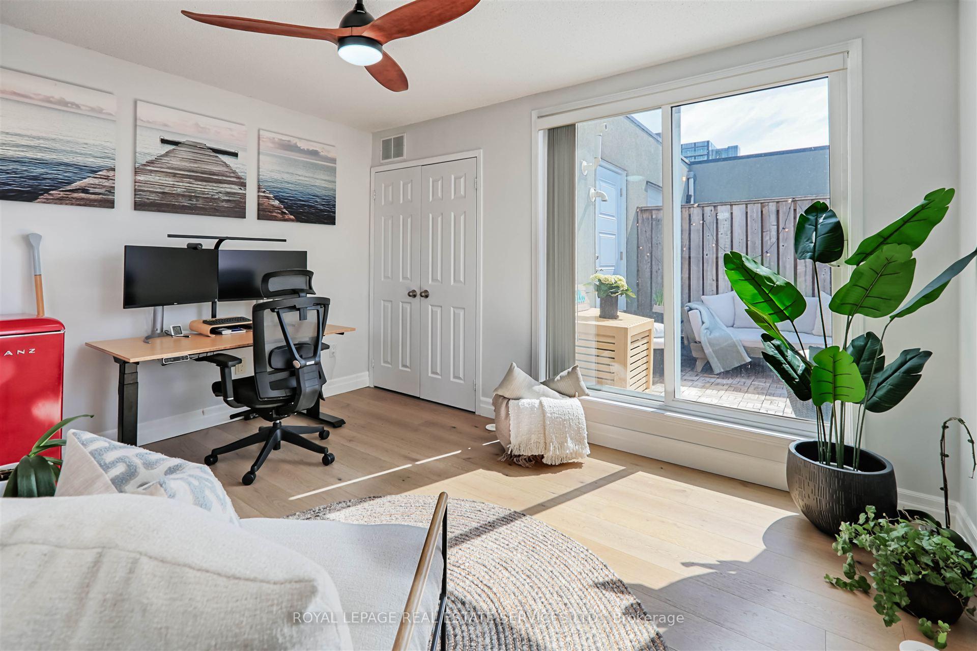 BRIGHT, RENOVATED & HIGHLY-EFFICIENT END-UNIT TOWNHOME IN TRENDY DUFFERIN GROVE! This coveted multi-level, sun-filled home offers a FLEXIBLE FLOOR PLAN with 2 or 3 bedrooms plus office space - perfect for professionals or anyone seeking adaptable urban living. The fully RENOVATED OPEN-CONCEPT Living/Dining/Kitchen (2021) features stainless steel appliances, quartz countertops, HEATED FLOORS and expansive west-facing windows that fill the space with natural light. New hardwood floors span the 2nd, 3rd and 4th levels, complemented by two Juliette balconies plus a PRIVATE ROOFTOP TERRACE with BBQ gas line and panoramic west/south/north views. Large windows with west and north exposure offer a bright, airy layout throughout. With two full bathrooms, ensuite laundry, generous storage, underground parking and a locker, this home is truly MOVE-IN READY. The pet-friendly complex includes visitor parking, playgrounds and a dog run. Located in an ULTRA-CONVENIENT, super walkable pocket steps to Roncesvalles, The Junction, High Park, Stedfast Brewing Co., Spaccio West and countless local favourites. Dundas West & Lansdowne subway stations, the UP Express, GO Transit and major bike paths are all within walking distance, making commuting or exploring the city effortless. BRIGHT, EFFICIENT, FLEXIBLE and right where you want to be - this vibrant urban gem checks every box!