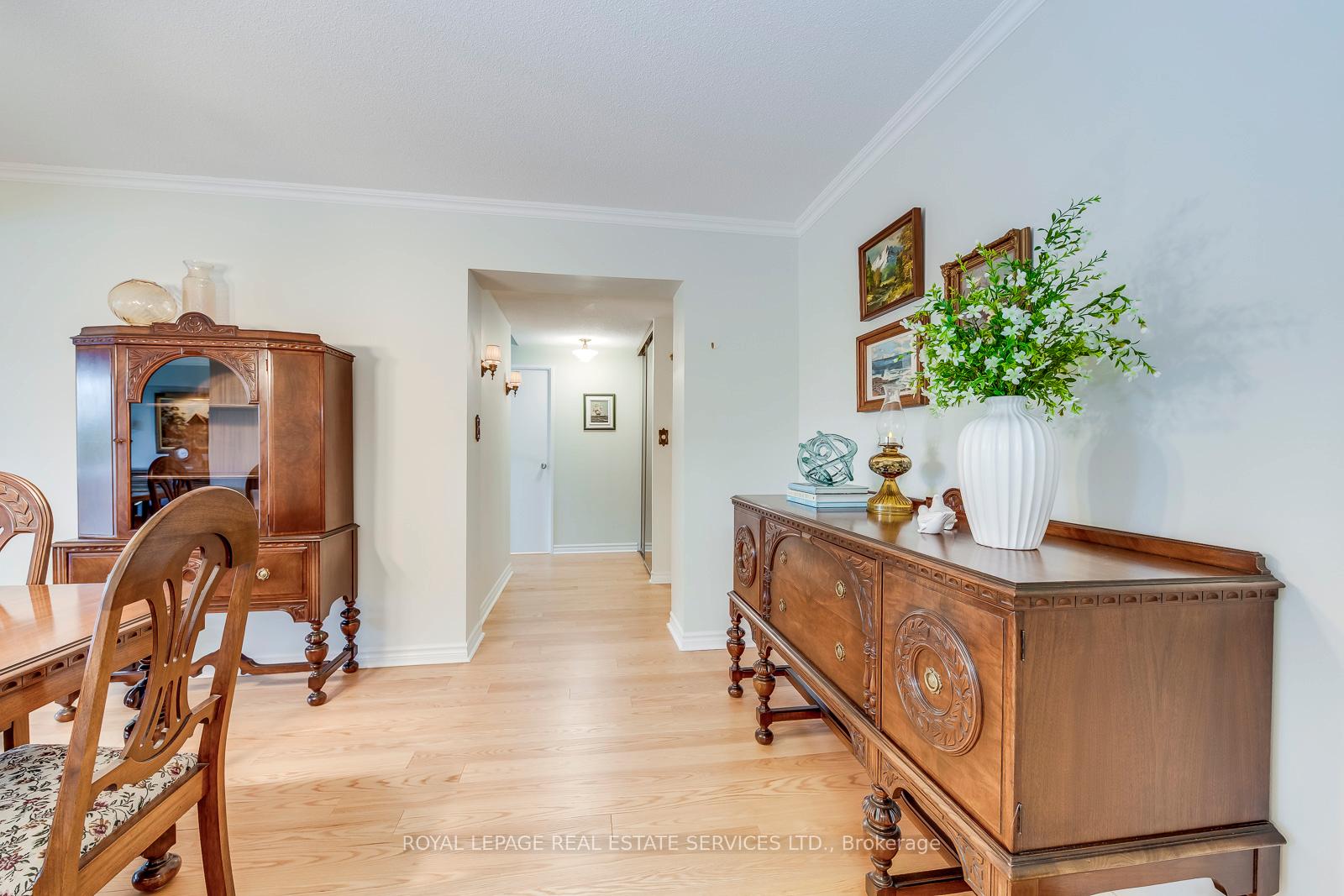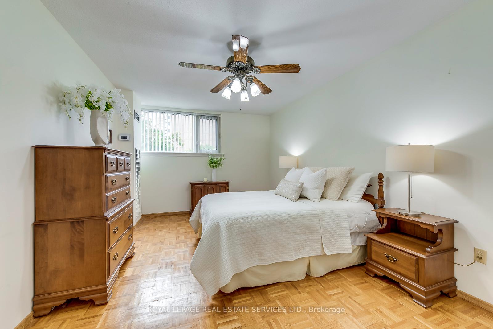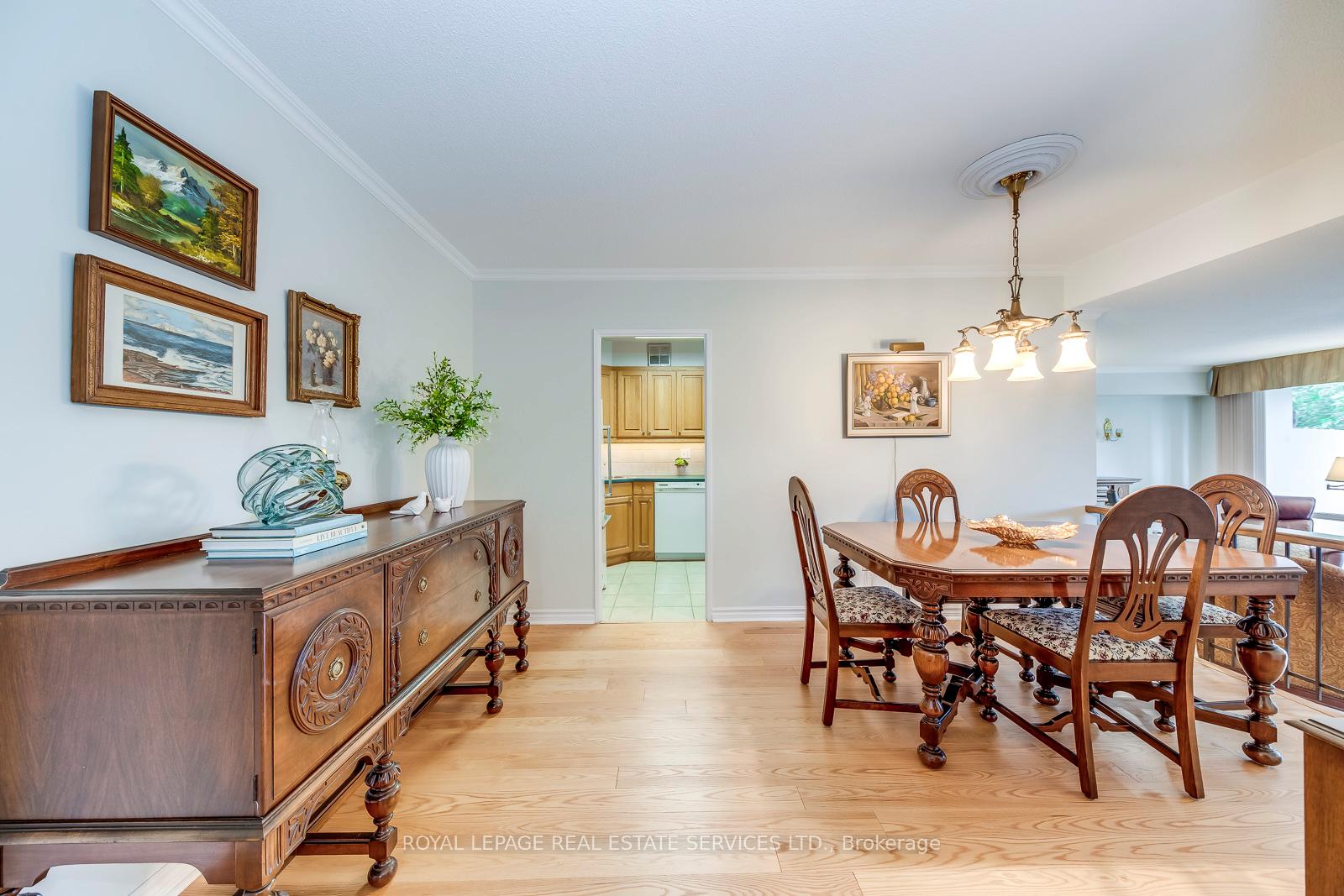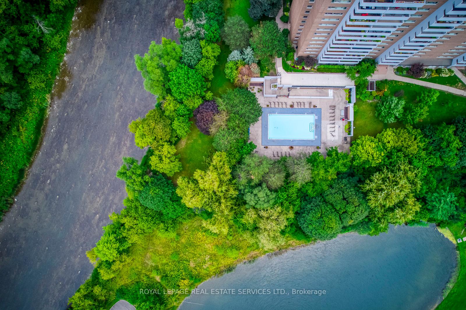 The Lambton Square condominium community consists of four distinct towers, each forming a separate condo corporation with its own dedicated recreation facilities. This condo is ideally situated at 240 Scarlett Rd and offers exceptional access to a wide range of amenities. Public transit is steps away, with multiple bus routes along Scarlett and easy connections to Runnymede Station on the Bloor subway line. Daily conveniences are nearby: grocery stores, European bakeries, and local shops. For nature lovers, the building backs onto the Humber River trails and is a short stroll to James Gardens-perfect for walking, cycling, or simply enjoying the outdoors. Golf enthusiasts will appreciate having the prestigious Lambton Golf & Country Club next door. Unit 405 offers exceptional value for those seeking spacious & functional living. The unit offers a family-sized kitchen with a cozy breakfast nook, a proper dining room, and a generous sunken living room with an electric fireplace. When you step out onto the oversized private balcony, the first thing you notice is the Humber River flowing just right there. Surrounded by mature trees, it feels less like a condo and more like your own private home. Beautiful flooring runs through the main areas, with wood parquet in the bedrooms. The primary bedroom includes a large closet and a 4-piece ensuite. The second bedroom works beautifully as a guest room or home office. Both bathrooms are 4-piece, featuring built-in cabinetry, a shower enclosure, and a soaker tub. An ensuite laundry room with additional storage completes this well-designed space. The building offers top-tier amenities: outdoor pool, fitness centre, sauna, party/meeting rooms, car wash bay & bike storage. Condo fees include **ALL utilities, **ROGERS high-speed internet and full cable TV package (Crave, HBO, full sports, etc.). Enjoy exclusive use of one parking spot and one locker, both included in the purchase price.