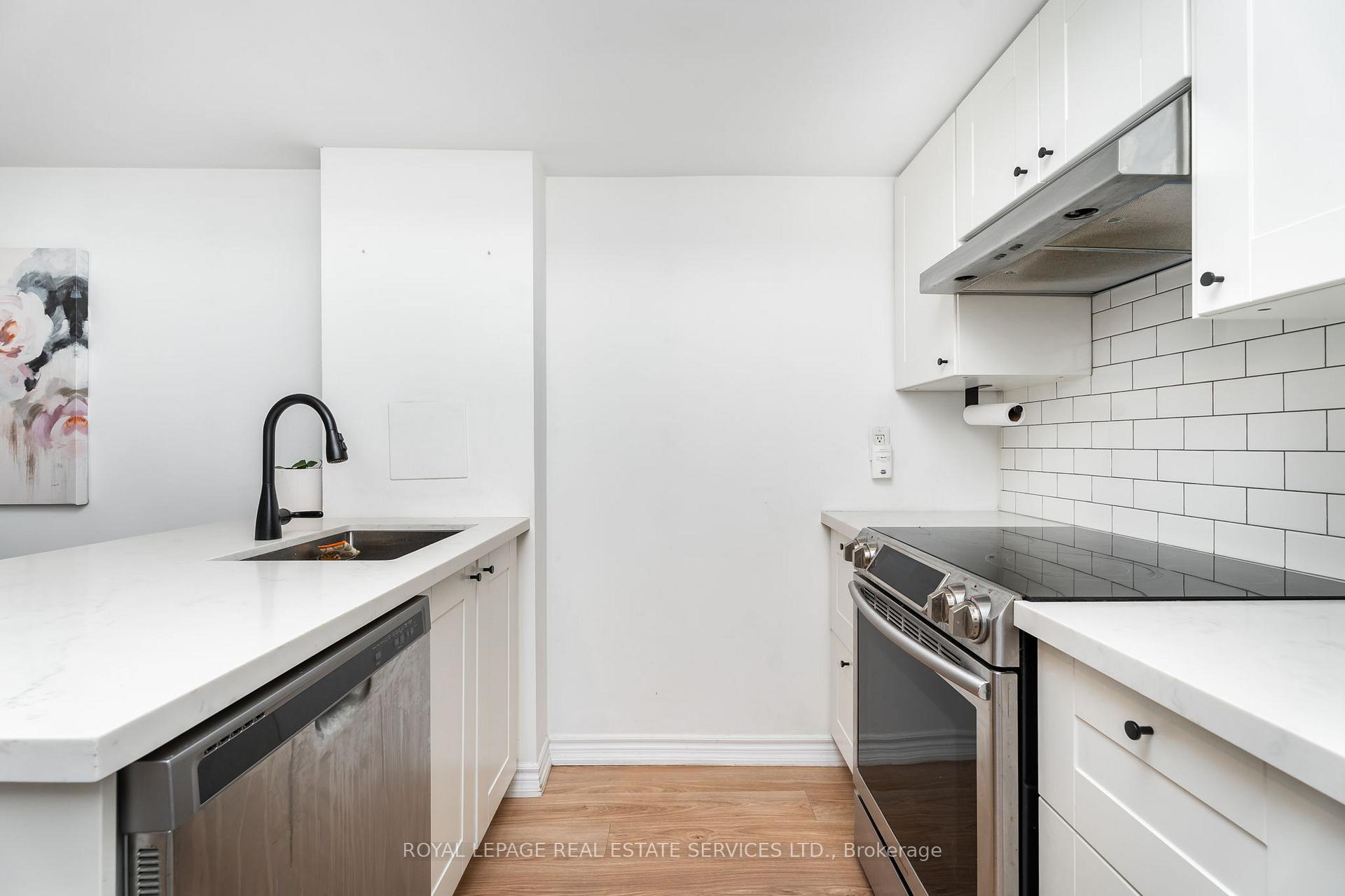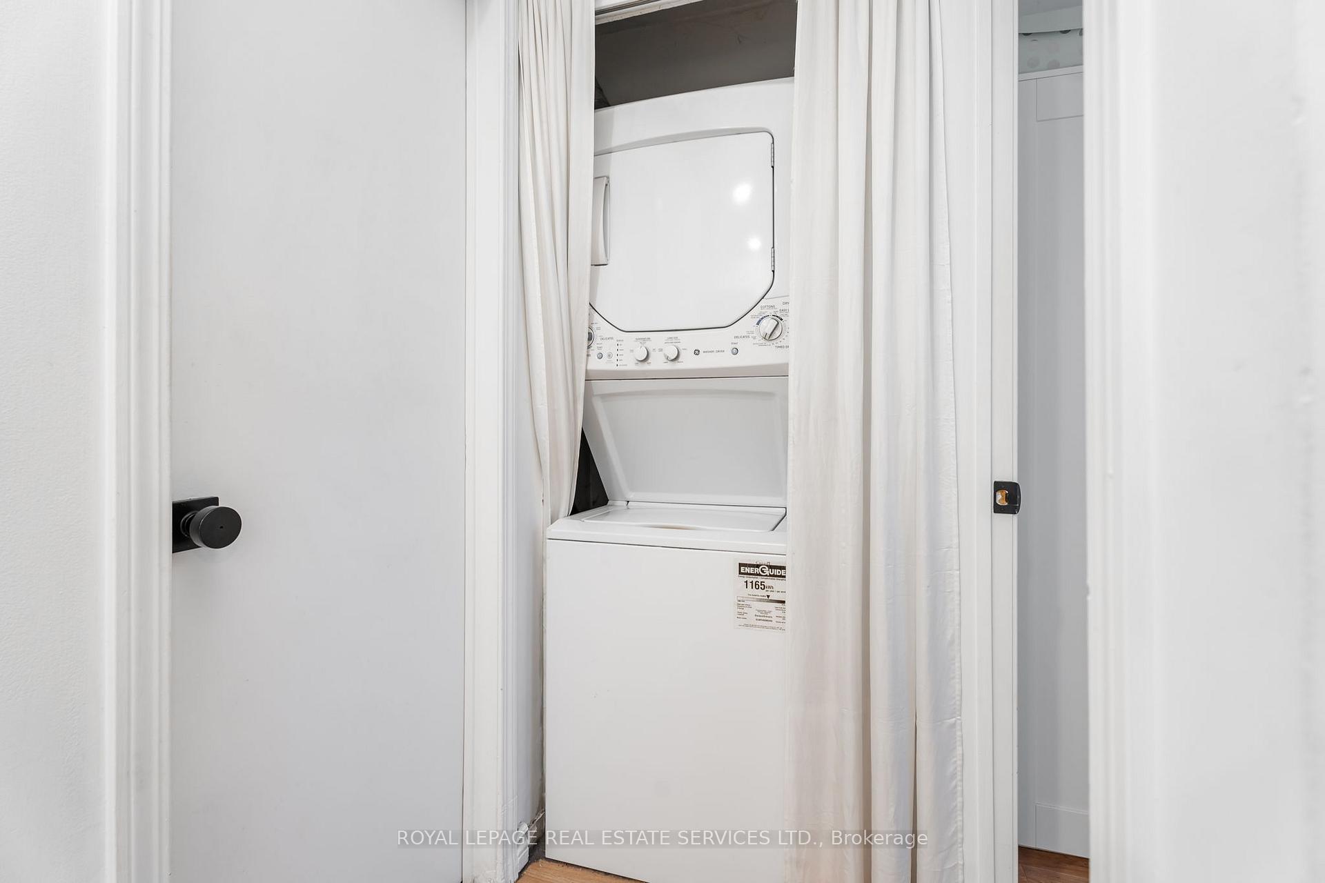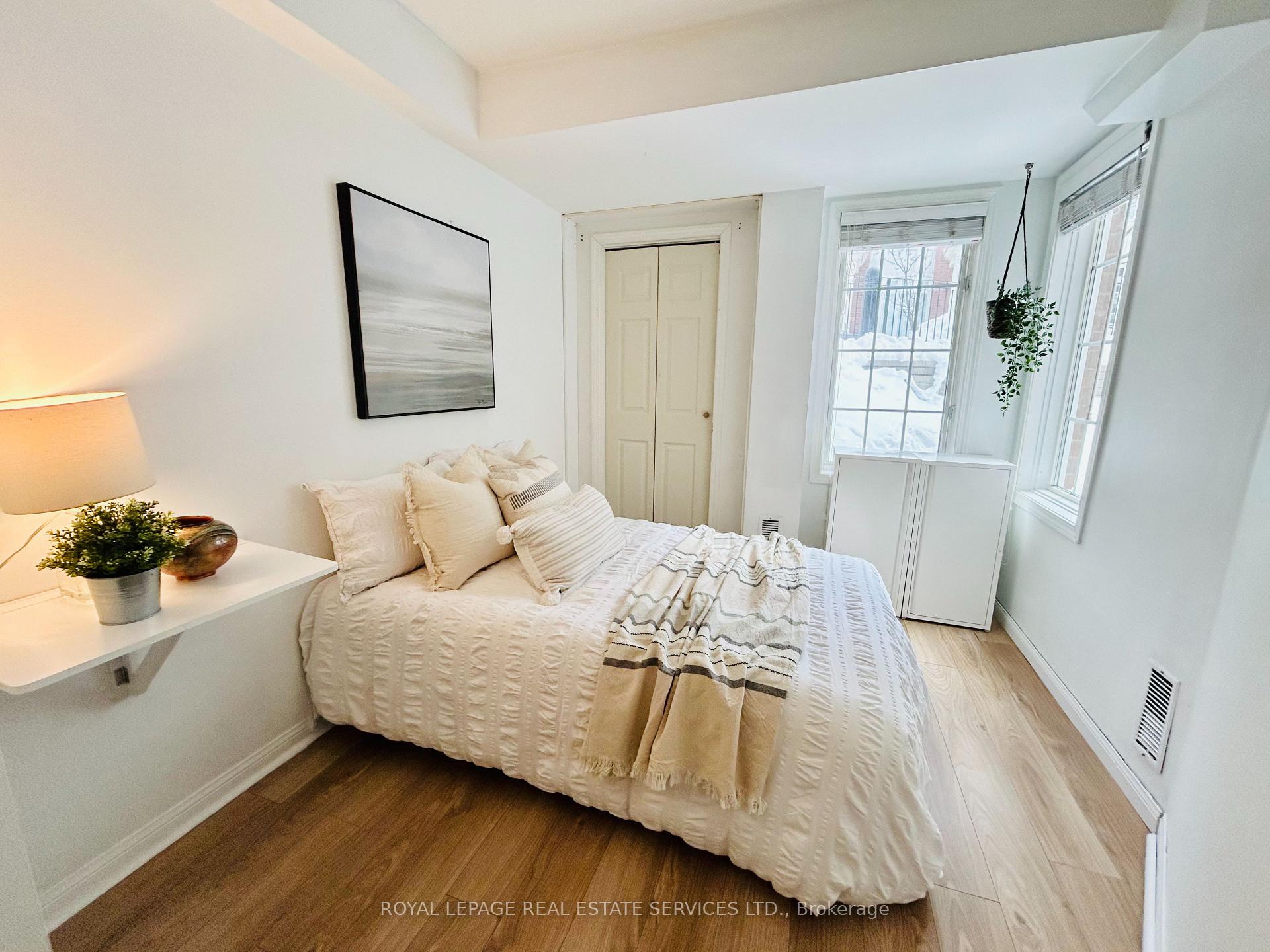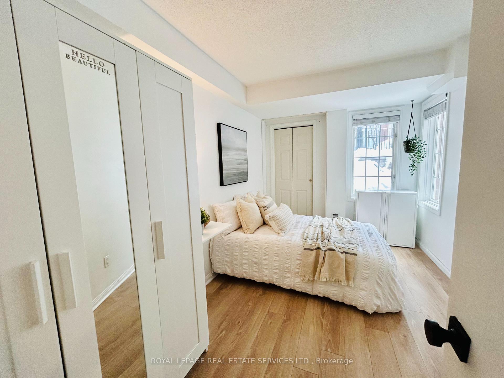 Rarely Offered Portland Park Village Townhome with Parking Included! Enjoy the best of downtown living in this beautifully updated 1-bedroom, 1-bathroom suite with a private terrace, perfect for entertaining or relaxing outdoors. The kitchen and bathroom were renovated in 2020, showcasing modern style and quality finishes. The chef's kitchen features quartz countertops, a convenient breakfast bar, and stainless steel appliances, while the open-concept layout offers seamless flow between the living and dining areas. Additional highlights include laminate flooring, ensuite laundry, and a spacious bedroom. With your own private entrance and access to a lovely garden space and private terrace this home offers the ideal balance of comfort and city living. Perfectly located across from the park and steps to King and Queen West's vibrant shops, The Well, restaurants, bars, TTC, and the Financial District. Move in and enjoy all that this sought-after neighbourhood has to offer! Access to a large top notch fitness facility included, perfect for the CrossFit lover, no need to join a gym. The furniture can be included or removed for the tenant!