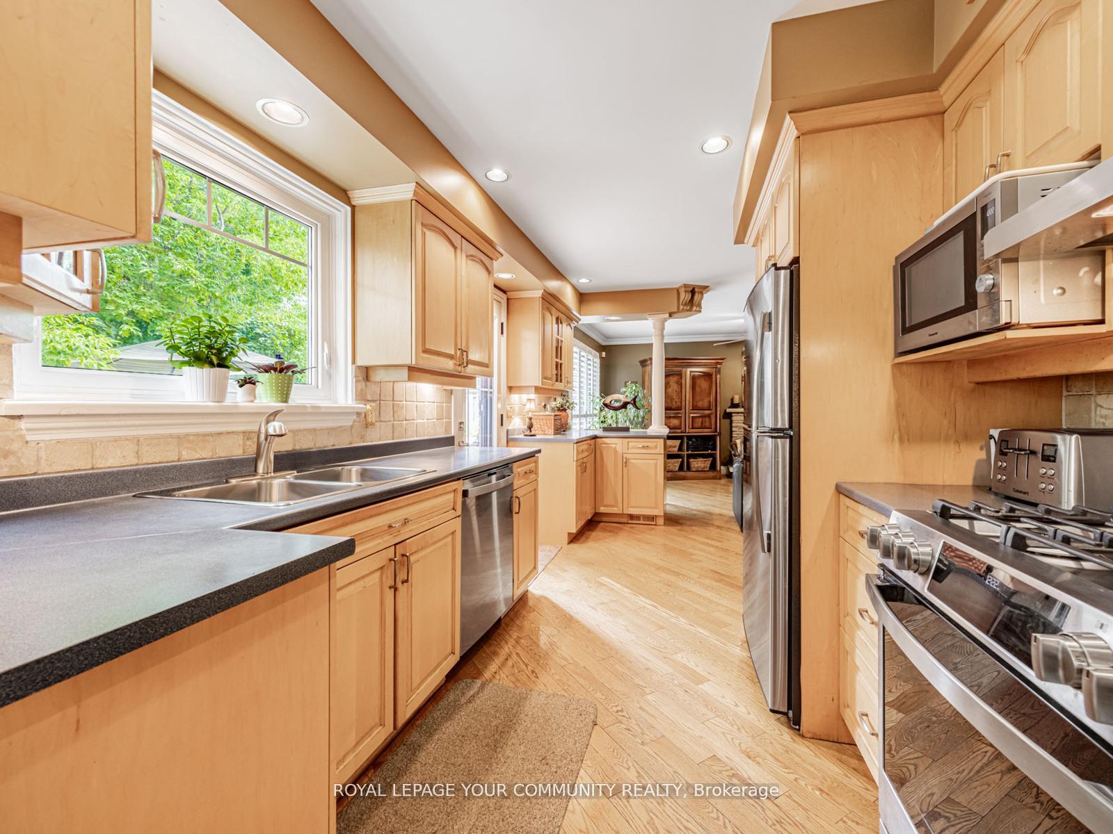 Welcome Home To This Beautifully Designed Open Concept Residence Nestled On A Premium Lot Backing Onto Green Space! Enjoy Your Own Private Backyard Oasis On a Quiet, Family Friendly, Mature Tree-Lined Street Of Coveted Royal Orchard! This Immaculate 4 Bedroom 3 Bath Home Exudes Pride Of Ownership With A Warm & Inviting Ambiance. Meticulously Maintained W/ Thoughtful Updates Throughout, The Main Floor Features Crown Moulding, Gleaming Hardwood Floors & A Convenient Open Concept Kitchen & Family Room W/Fireplace, Pot Lights & Built-In Speakers That Will Naturally Become The Heart Of The Home. Hosting Will Be A Breeze With The Functional Floor Plan Of A Combined, Spacious Living & Dining Room & Easy Access To The Kitchen That's Equipped w/ Beautiful Stainless Steel Smart Appliances & Breakfast Bar. 2 Walkouts To The Back Patio Offer A Seamless Connection To The Outdoors & Spectacular All Season Views! The Bright, Upper Level Boasts 4 Generous Sized Bedrooms Including A Large Primary Retreat with Ensuite, Walk-In Closet & A Renovated Family Bathroom With A Whirlpool Jet Bath. Lots Of Room & Closet Space To Sustain You Through The Growing Years & Beyond! The Partially Finished Lower Level Includes A Finished Office Or 5th Bedroom & A Fabulous Opportunity To Transform A Huge Rec Area To Your Individual Needs! In Addition, 2 Spacious Storage Areas W/ Shelving, Work Bench & Craft Area Provide Easy Organization. The Real Show Stopper Is The Prof Landscaped, Ultra Private & Fully Fenced Yard Boasting Well Established Perennial Gardens, Mature Trees & Shrubs, Expansive Patio & A Cozy 12' x 9' "Finished Shed" W/ Electricity & Wifi To Extend Living Space! Truly Another Level Of Relaxation Or Entertaining W/Family & Friends In a Tranquil Retreat! No Neighbours Behind!! Walk To 3 Top Elem. Schools (Incl Fr. Immer), Nature Trails, Ravine, Shopping & Transit (incl Future Royal Orchard Subway Stop!). Mins to Hwys 407 & 404, 3 Golf Courses & Active Community Centre! A MUST SEE!