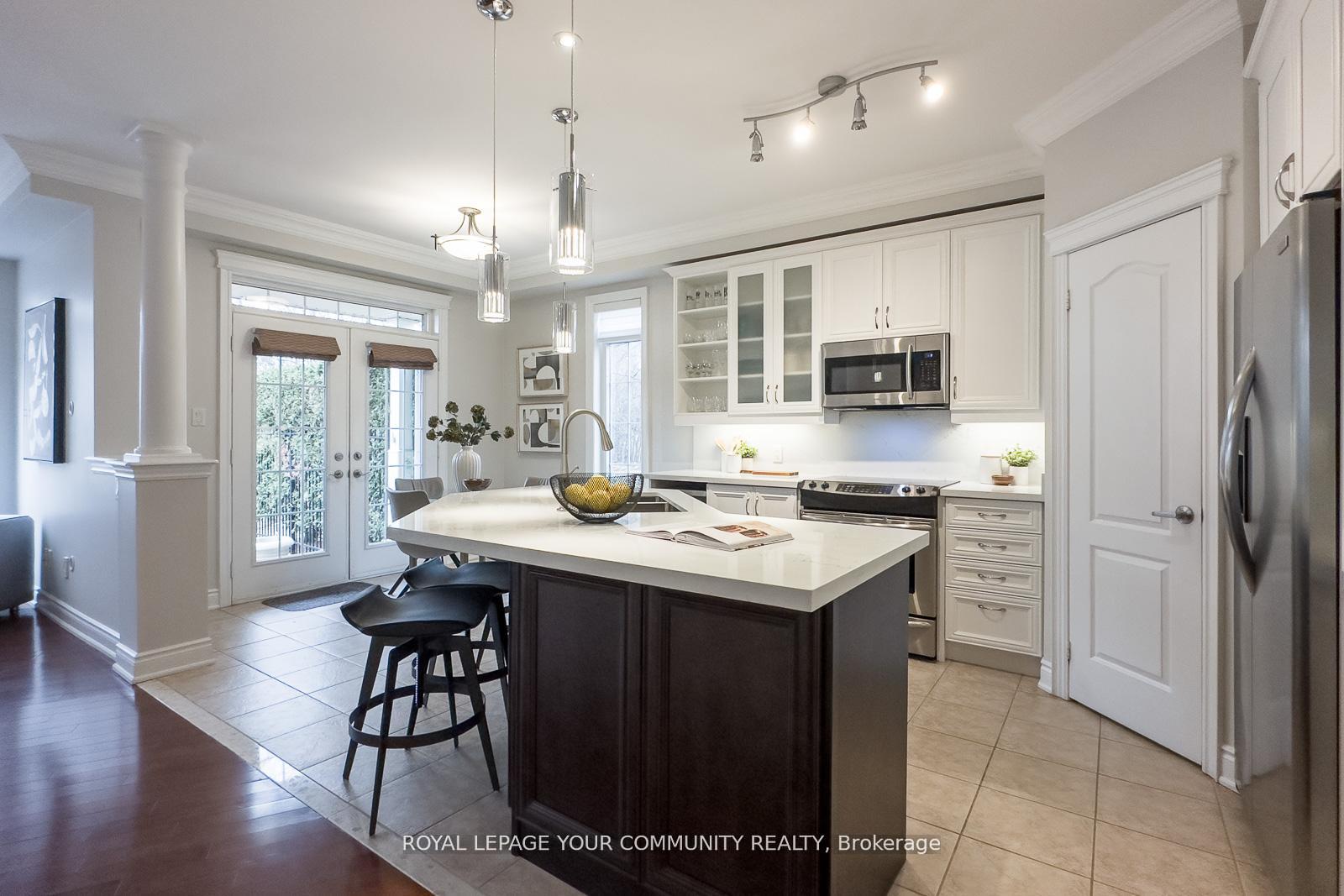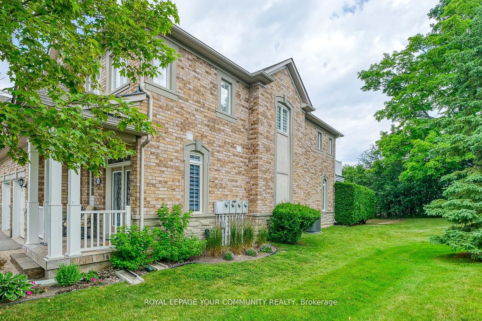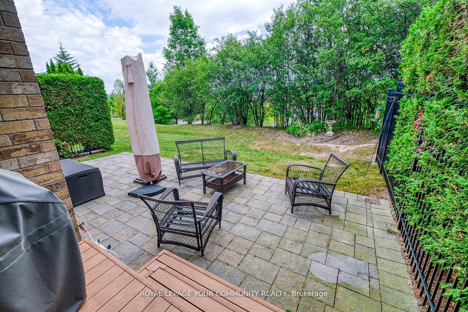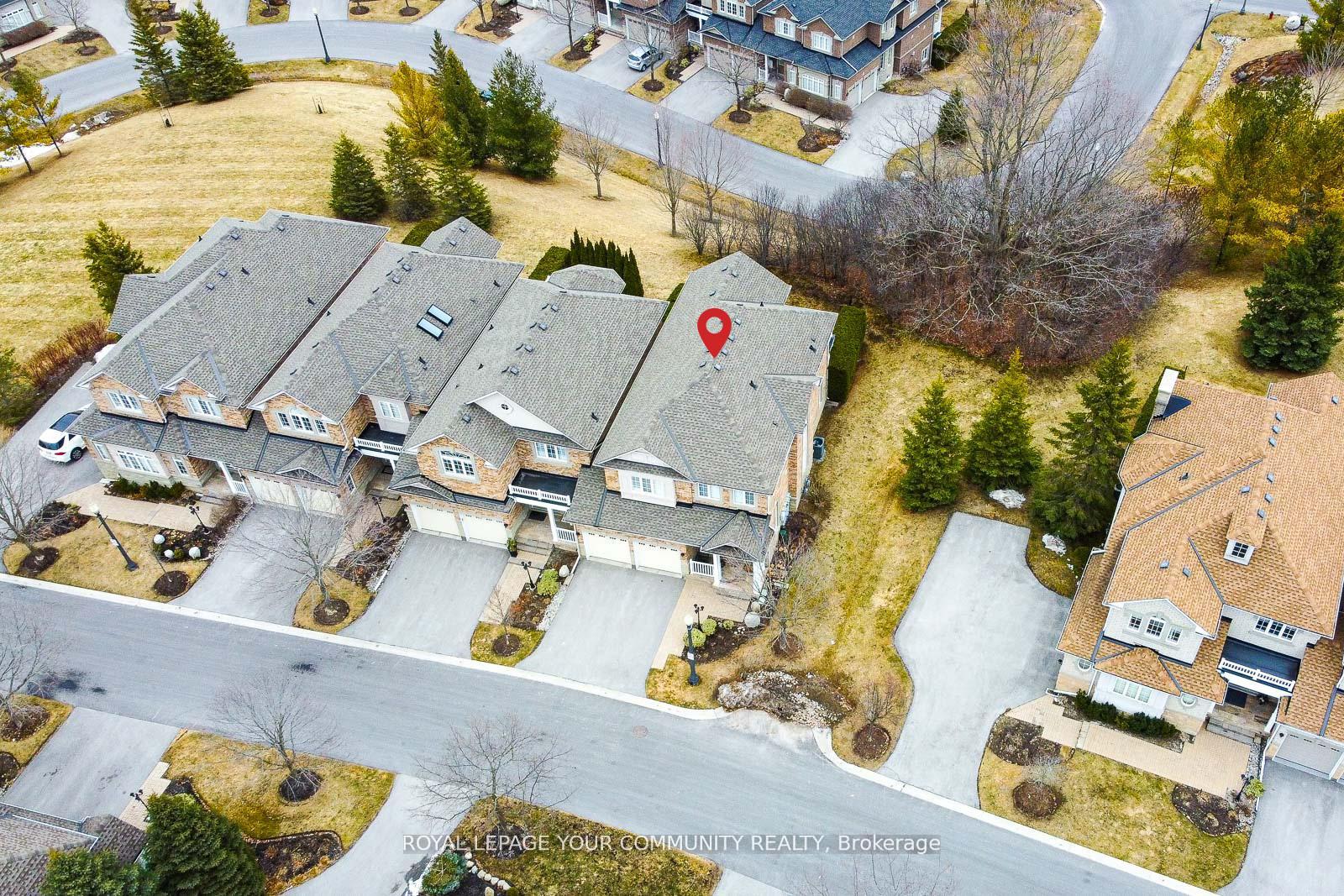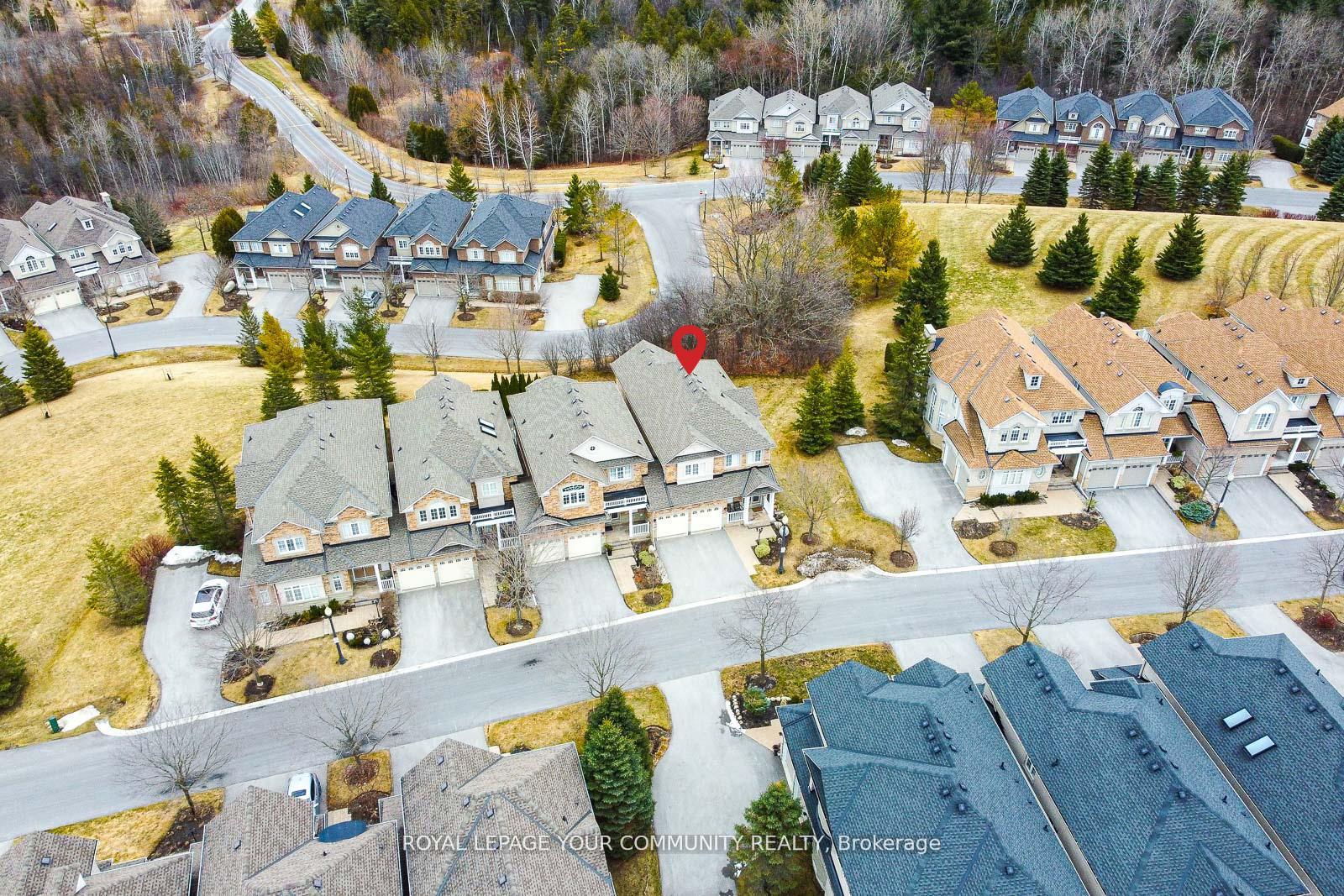 Looking for a safe community to live in then this Executive Townhouse in the Gated Community of "Stonebridge Estate." is the answer. Located on approx. 50 acres in a tranquil wooded setting, surrounded by golf courses, Oak Ridges Moraine, close to shopping, hospitals, highways and much more. The townhouses are joined only by the double car Garages. This upgraded end unit with an open concept main floor has many upgrades. Some of the enhancements include the following: the renovated kit with w/o to extended patio, extended white cabinetry, center island seats 2. The Great room is extremely bright with a gas fireplace, crown moulding, and overlooks the backyard. Formal Dining with its cathedral ceiling, crown moulding and motorized drapes. Hardwood floors in both the Great Room & Dining room. Separate laundry area with double closet, 2pc powder room and access to double car garage. 2nd Flr has hardwood flooring throughout. Primary bdrm: renovated 5pc bathroom with separate shower, heated bathroom floor, double sink, walk-out to east view balcony to see fantastic sun rises, ceiling fan, walk-in closet with closet organizers, crown moulding, pot lights and electric fireplace. 2nd & 3rd each have double closets, hardwood floors. Renovated 4pc bathroom on 2nd floor. The basement consists of 3 areas: recreation area, bar area, office and a 3-piece bathroom. Separate are for furnace room which includes shelves. There are also lots of separate storage areas and a clod cellar. LOOKING FOR A LIFESTYLE CHANGE OR A PLACE TO FEEL SECURE AND SAFE? THIS IS THE PROPERTY TO SEE.