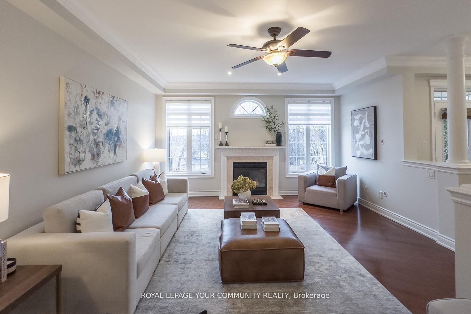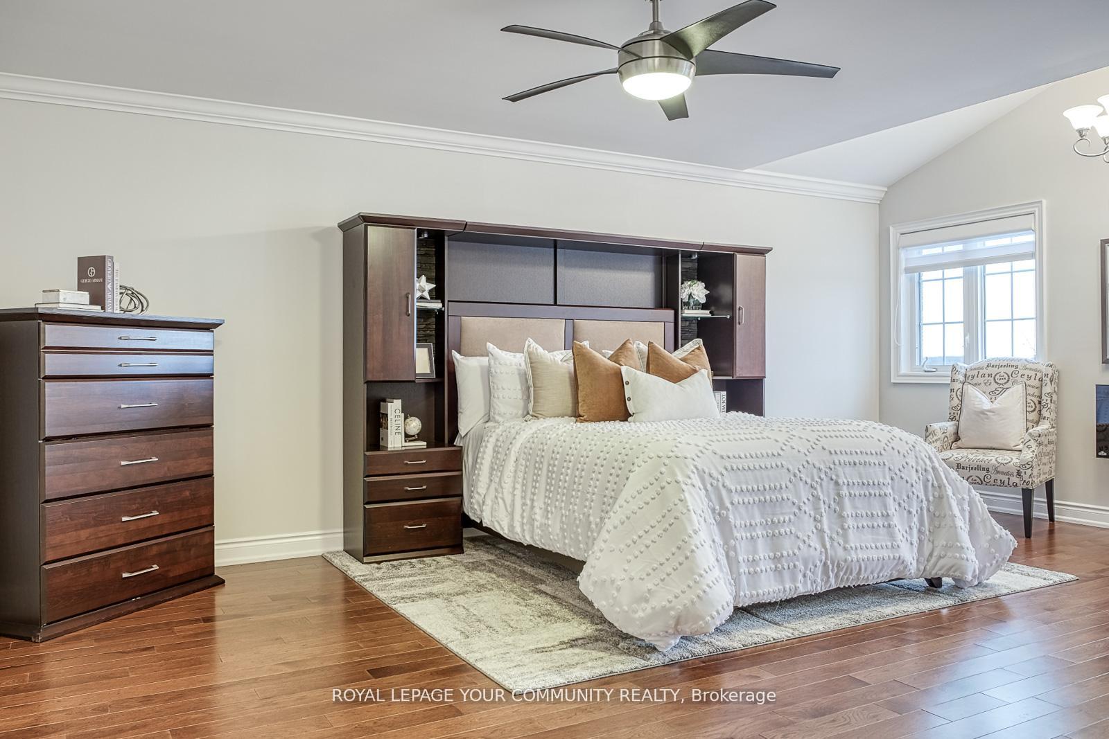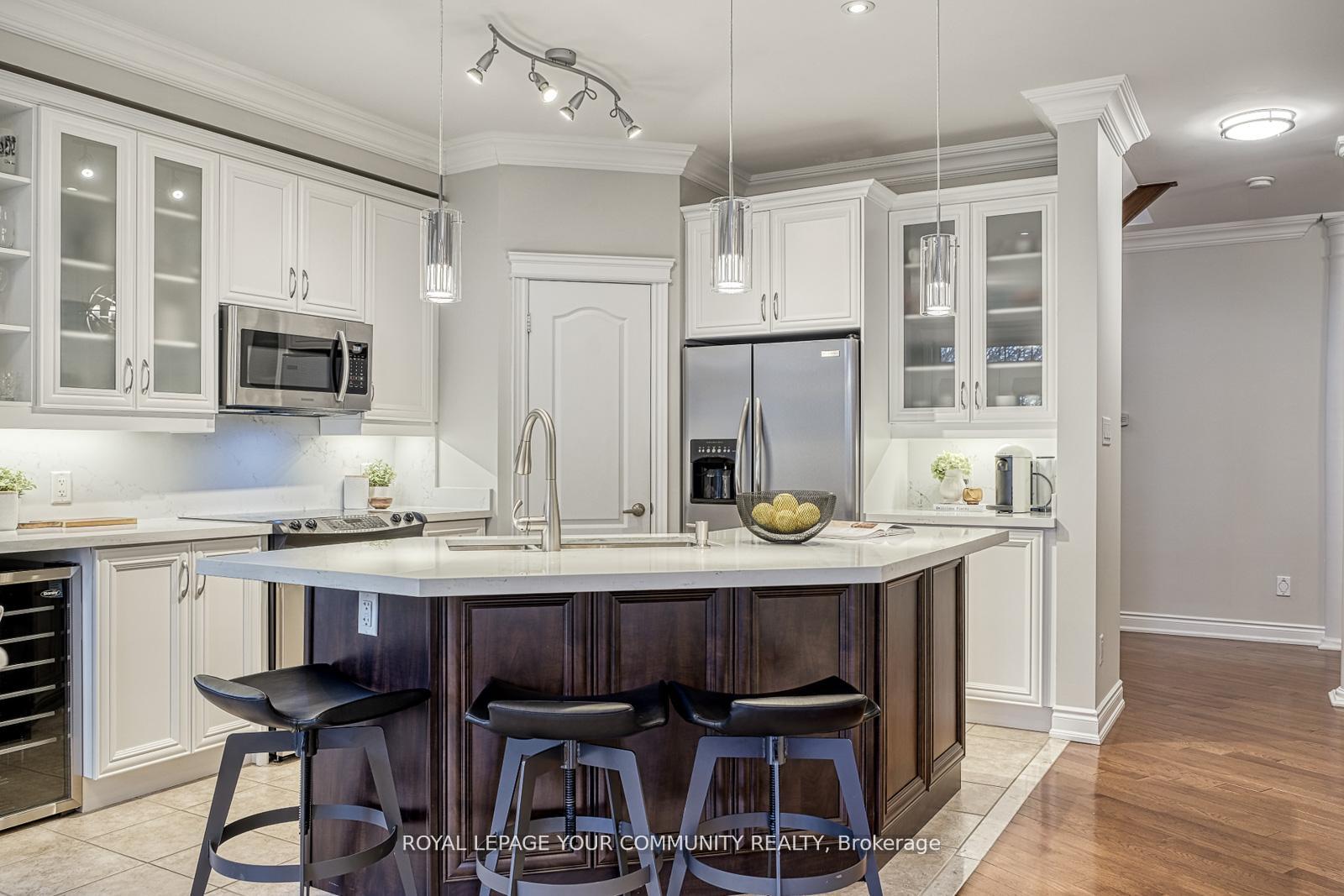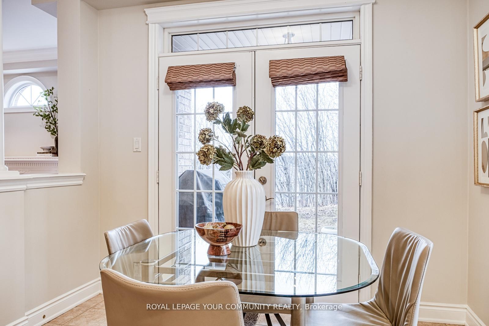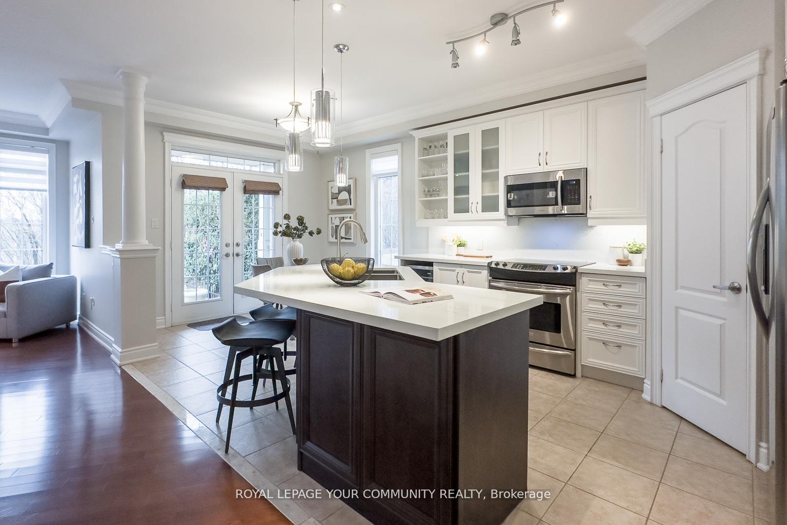 Looking for a safe community to live in then this Executive Townhouse in the Gated Community of "Stonebridge Estate." is the answer. Located on approx. 50 acres in a tranquil wooded setting, surrounded by golf courses, Oak Ridges Moraine, close to shopping, hospitals, highways and much more. The townhouses are joined only by the double car Garages. This upgraded end unit with an open concept main floor has many upgrades. Some of the enhancements include the following: the renovated kit with w/o to extended patio, extended white cabinetry, center island seats 2. The Great room is extremely bright with a gas fireplace, crown moulding, and overlooks the backyard. Formal Dining with its cathedral ceiling, crown moulding and motorized drapes. Hardwood floors in both the Great Room & Dining room. Separate laundry area with double closet, 2pc powder room and access to double car garage. 2nd Flr has hardwood flooring throughout. Primary bdrm: renovated 5pc bathroom with separate shower, heated bathroom floor, double sink, walk-out to east view balcony to see fantastic sun rises, ceiling fan, walk-in closet with closet organizers, crown moulding, pot lights and electric fireplace. 2nd & 3rd each have double closets, hardwood floors. Renovated 4pc bathroom on 2nd floor. The basement consists of 3 areas: recreation area, bar area, office and a 3-piece bathroom. Separate are for furnace room which includes shelves. There are also lots of separate storage areas and a clod cellar. LOOKING FOR A LIFESTYLE CHANGE OR A PLACE TO FEEL SECURE AND SAFE? THIS IS THE PROPERTY TO SEE.