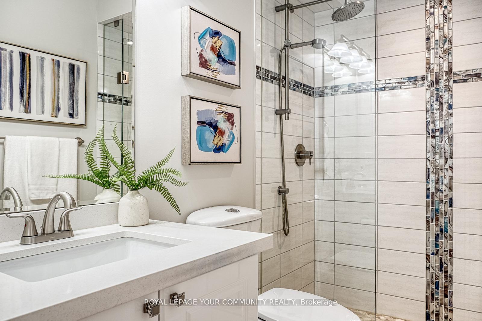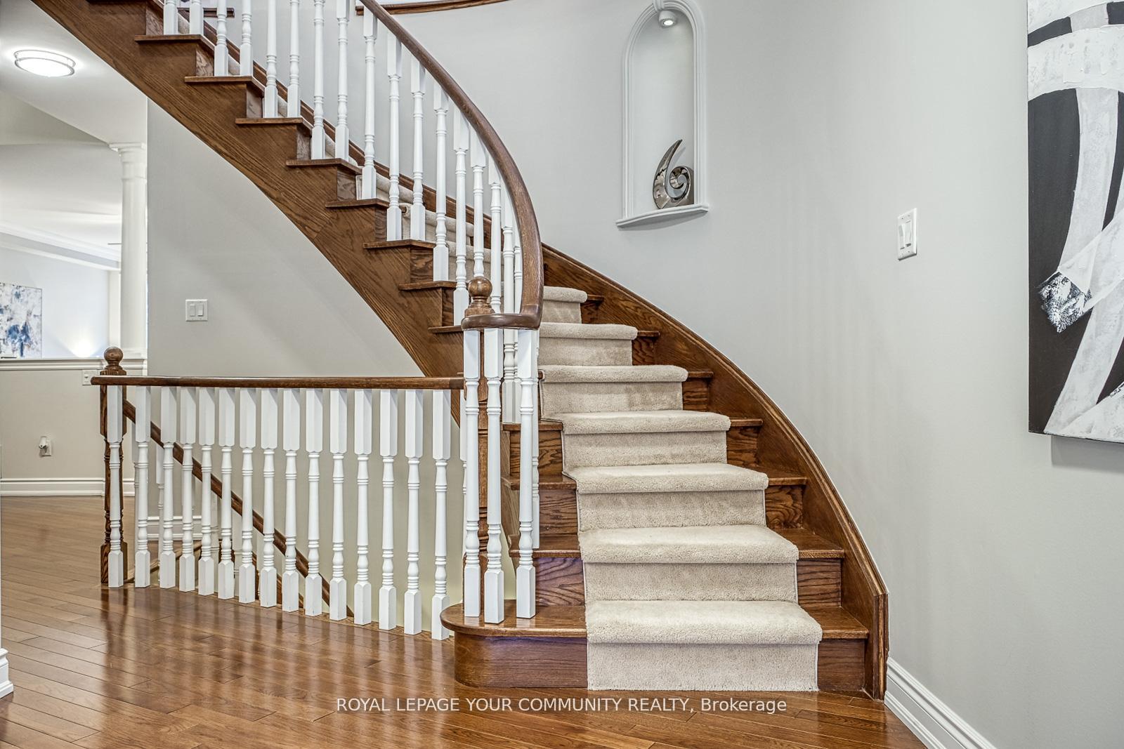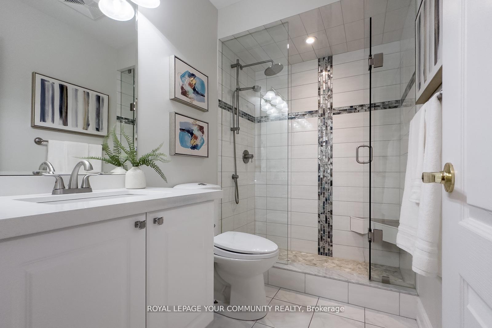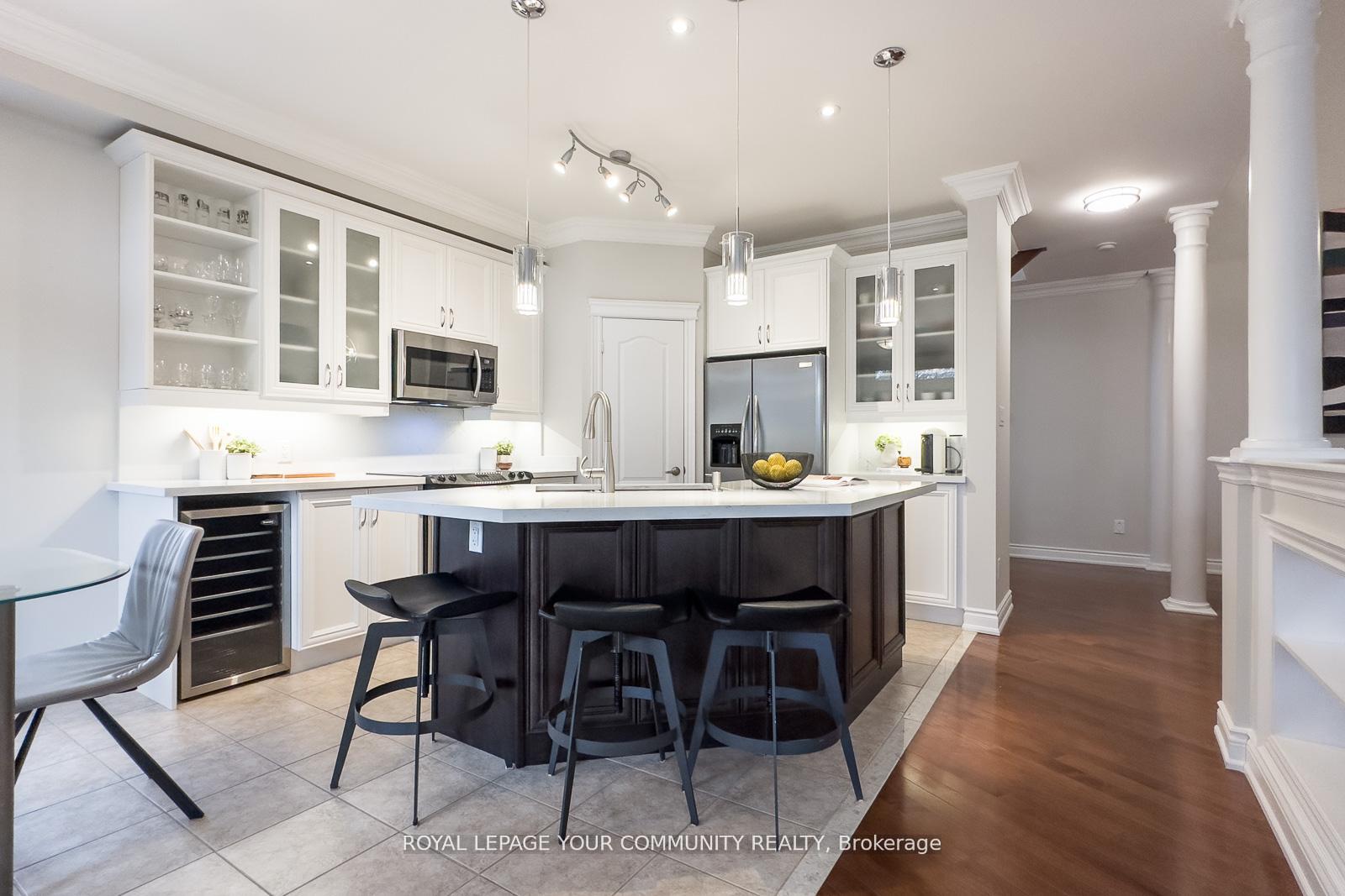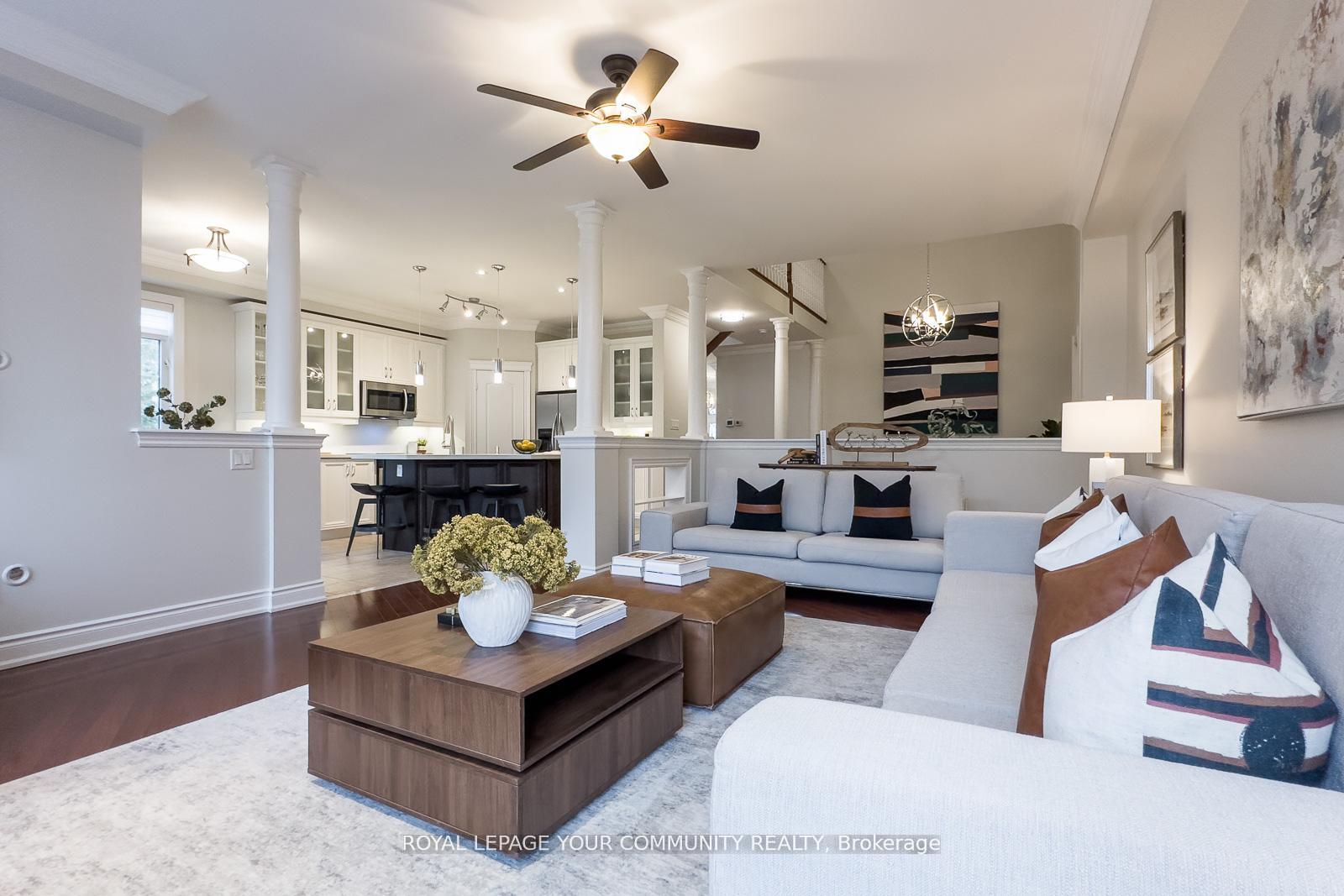Looking for a safe community to live in then this Executive Townhouse in the Gated Community of "Stonebridge Estate." is the answer. Located on approx. 50 acres in a tranquil wooded setting, surrounded by golf courses, Oak Ridges Moraine, close to shopping, hospitals, highways and much more. The townhouses are joined only by the double car Garages. This upgraded end unit with an open concept main floor has many upgrades. Some of the enhancements include the following: the renovated kit with w/o to extended patio, extended white cabinetry, center island seats 2. The Great room is extremely bright with a gas fireplace, crown moulding, and overlooks the backyard. Formal Dining with its cathedral ceiling, crown moulding and motorized drapes. Hardwood floors in both the Great Room & Dining room. Separate laundry area with double closet, 2pc powder room and access to double car garage. 2nd Flr has hardwood flooring throughout. Primary bdrm: renovated 5pc bathroom with separate shower, heated bathroom floor, double sink, walk-out to east view balcony to see fantastic sun rises, ceiling fan, walk-in closet with closet organizers, crown moulding, pot lights and electric fireplace. 2nd & 3rd each have double closets, hardwood floors. Renovated 4pc bathroom on 2nd floor. The basement consists of 3 areas: recreation area, bar area, office and a 3-piece bathroom. Separate are for furnace room which includes shelves. There are also lots of separate storage areas and a clod cellar. LOOKING FOR A LIFESTYLE CHANGE OR A PLACE TO FEEL SECURE AND SAFE? THIS IS THE PROPERTY TO SEE.