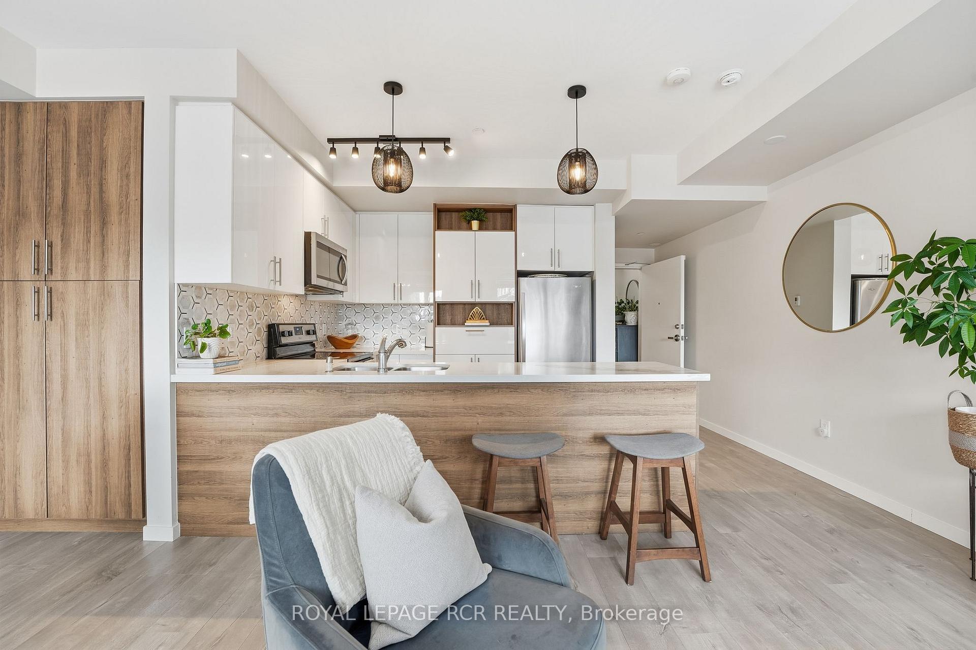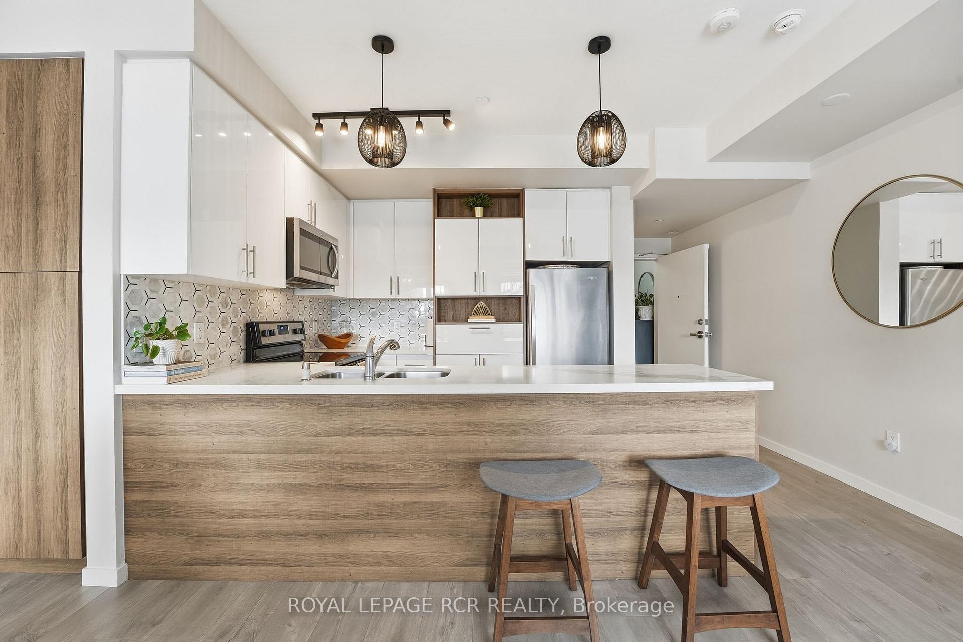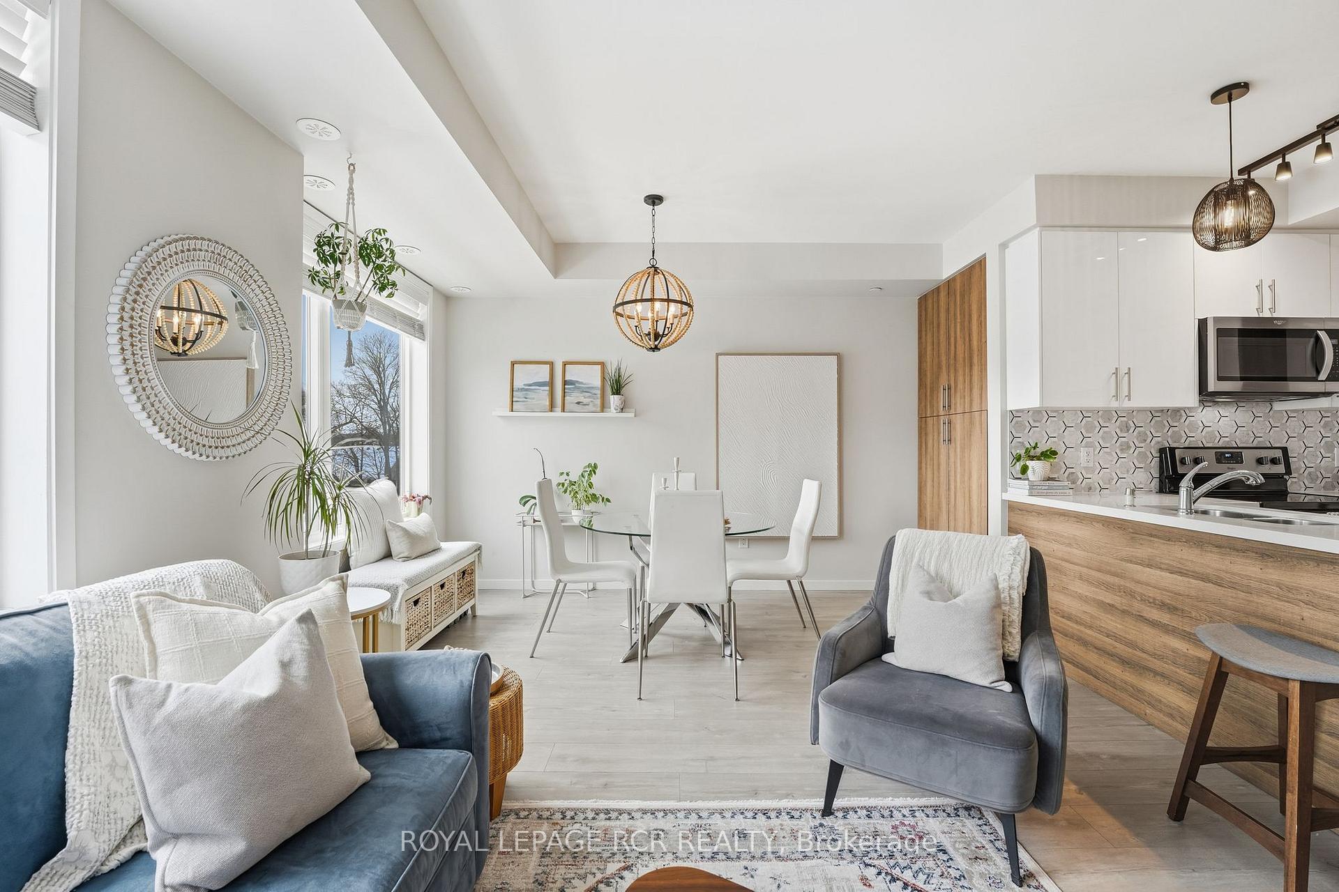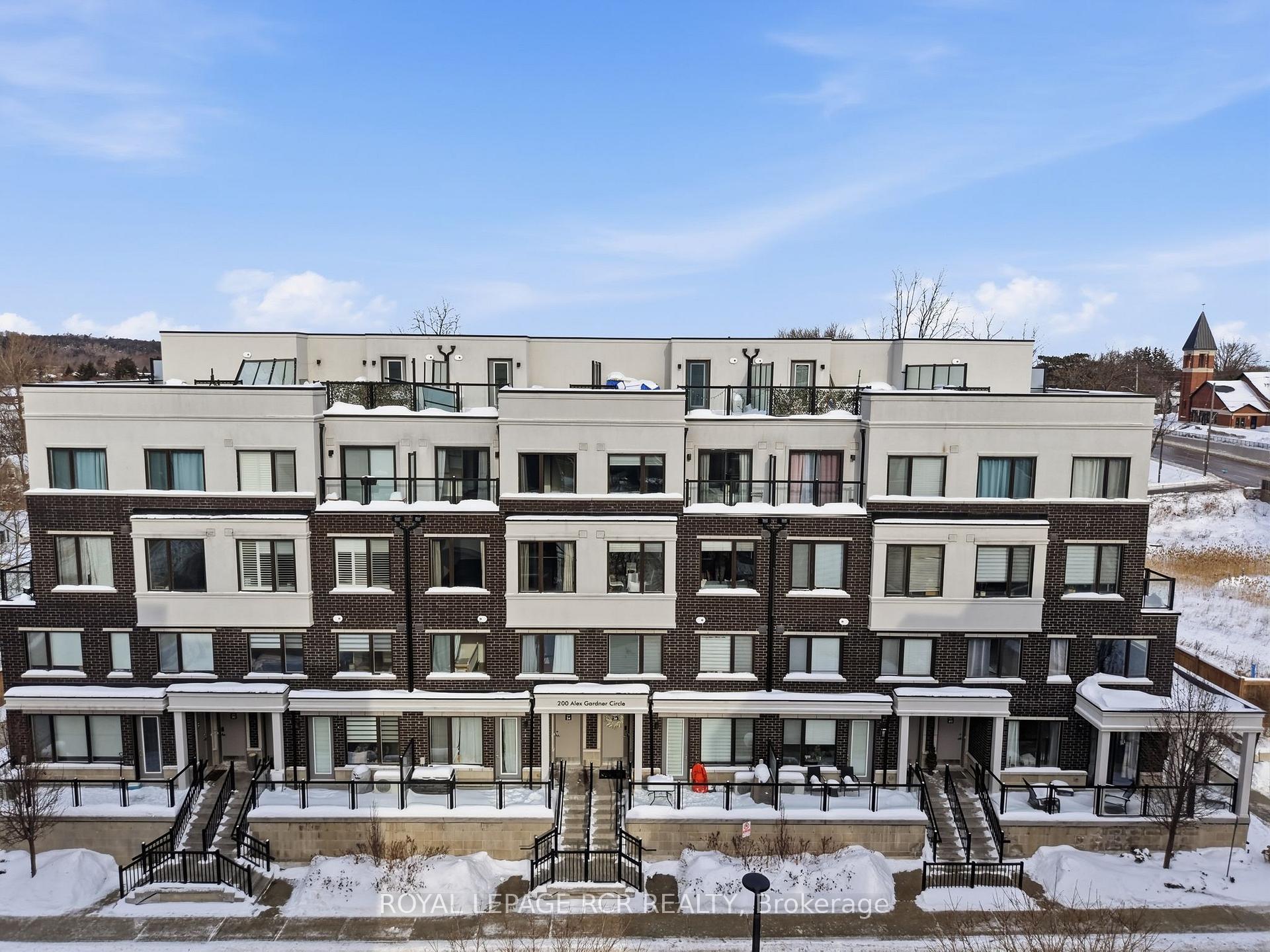 Welcome to this stylish 2-bedroom, 3-bath stacked townhouse offering modern design and functional living across every level. The open-concept main floor showcases a contemporary kitchen with quartz countertops, sleek tile backsplash, and counter seating, flowing seamlessly into the dining area and bright living space. Expansive windows fill the home with natural light, creating an airy and inviting atmosphere. Upstairs, the spacious primary suite features a walk-in closet, a charming Juliette balcony, and a private ensuite bath with a glass shower. A second bedroom and additional bathrooms provide excellent flexibility for guests, family, or a home office. Enjoy outdoor living on your private rooftop terrace, perfect for entertaining or relaxing. Underground parking and a storage locker add everyday convenience. Ideally located close to the Aurora GO Station, Summerhill Market, Aurora Town Park, and the Aurora Cultural Centre, this modern condo townhome balances comfort, style, and low-maintenance living in the heart of a vibrant community.