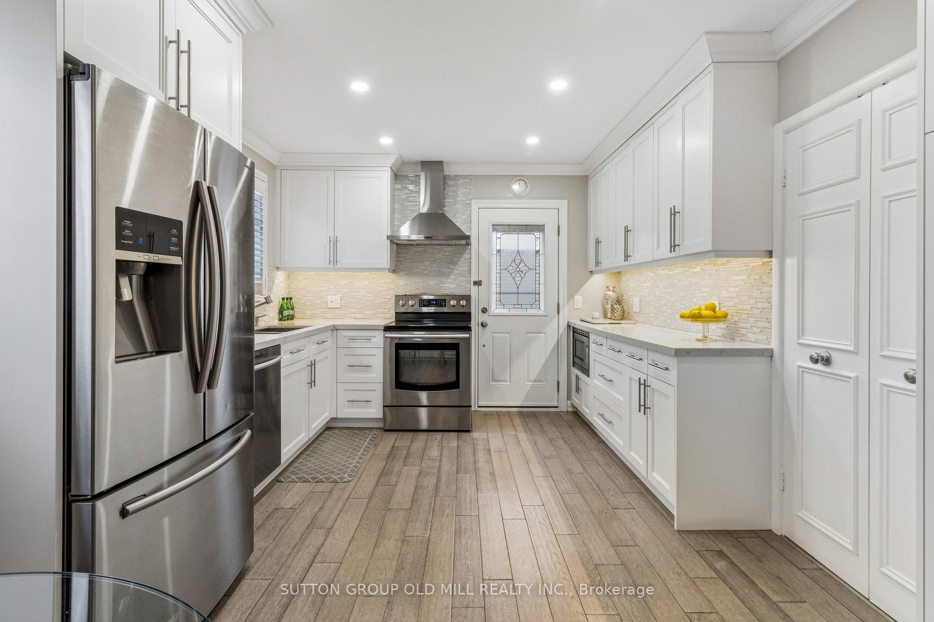 Family-friendly home in coveted Princess Anne Manor. Welcome to this spacious home and enjoy the quiet street and unusually large back yard. Ideally offering the perfect blend of a great location AND an easy walk to the local high demand area schools - St George's Primary and Richview Collegiate, among them. Close to transit and the upcoming Eglinton West LRT and a short ride to Pearson International Airport.This home has been renovated with taste and style, boasting charming principal rooms for entertaining and a chic white kitchen (2017) with sparkling stainless appliances. Dishwasher(2015).A caesar stone counter top, and tile backsplash complement the decor. There is a sunny breakfast area and a convenient walk-out to the side yard via a stylish door, with leaded glass insert. Light gray wood flooring complements the modern kitchen finishes.Lovely darker oak hardwood flooring throughout main floor and one recreation room. Beautiful Adams-style wood burning fireplace anchors the formal living room and is naturally bright with a large floor-to-ceiling picture window (2021).A formal separate dining room has picture window and wainscoting. An added benefit, this home is much larger than it appears and offers a fourth bedroom on the half level that closes off and has a modern 3 pc bath - perfect for a nanny suite. The large Rec room on the half level has windows on two walls, a wood burning fireplace and wall-to-wall built-ins to display your treasures.Lower level features more custom wall-to-wall built-ins in a generous-sized Second Rec room with an included pool table. A nearby Furnace room has plenty of storage space and a fridge.Cantina. There is an extensive crawl space accessed from the furnace room or the lower Rec Room.Waterproofing performed in 2000. Air Con (2016). Furnace (2010) Roof shingles(2021). Backyard is partially fenced. Garden features mature trees, backyard stone patio and wiring for exterior lights. Front and alongside garage interlock path.