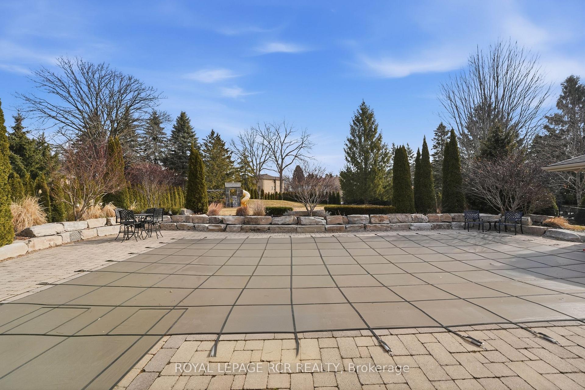 Set on a stunning estate lot in King City's prestigious Heritage Park, this impeccably maintained residence offers over 4,000 sq. ft. of refined living space. Significant renovations in 2016 and 2020 have brought unparalleled craftsmanship to the home, featuring engineered white oak floors, upgraded baseboards, and custom solid wood doors throughout. The main level is designed for both sophisticated entertaining and everyday function, boasting a chef's kitchen with custom Nima cabinetry, Caesarstone countertops, and a walk-in pantry. Sliding French doors seamlessly connect the principal spaces, including a spacious family room, a formal dining area, and a dedicated main-floor office complete with a bright bay window. For added convenience, a full laundry room provides direct access to the basement, backyard, mudroom and the three-car garage. The second level continues the white oak flooring across five generous bedrooms, providing exceptional flexibility for a growing family. The primary suite serves as a true sanctuary, highlighted by his-and-hers closets and a luxuriously renovated 6-piece ensuite completed in 2016. The home's versatility extends to the finished basement, which offers incredible potential for multi-generational living or guest accommodation, featuring an expansive recreation area, a gas fireplace, a full second kitchen, and a 3-piece bathroom. Outdoors, the property transforms into a private resort-style oasis. A heated saltwater inground pool is surrounded by professional landscaping, interlock stonework, and lush green space perfect for relaxation. Completing this rare offering is a three-car garage with a unique attached bonus room, providing the perfect footprint for a home gym, workshop, or pool house. This home perfectly blends thoughtful design and family-focused functionality in one of King City's most established and sought-after settings.