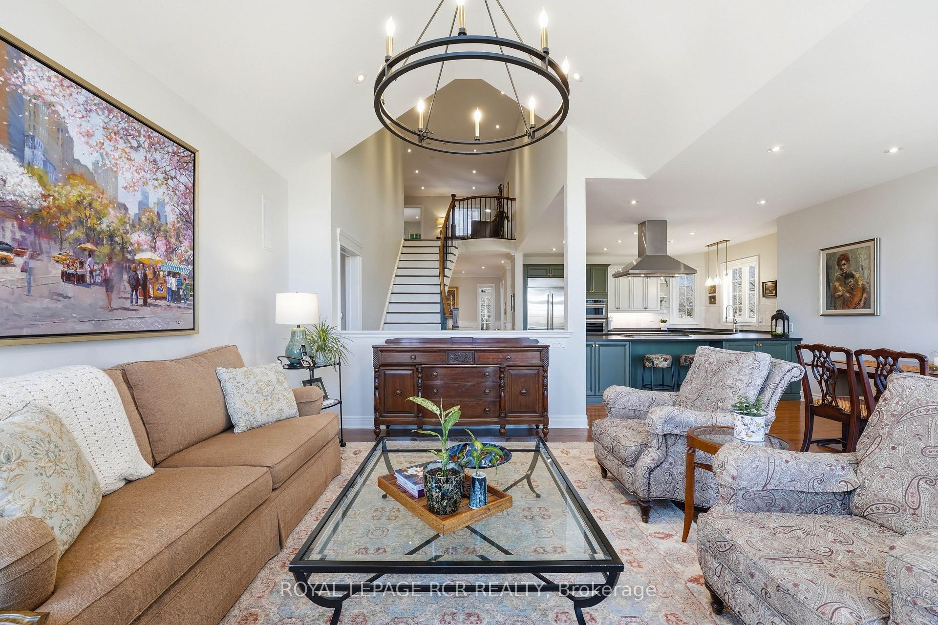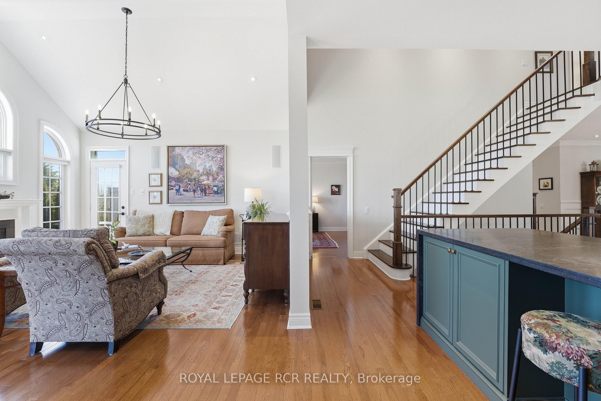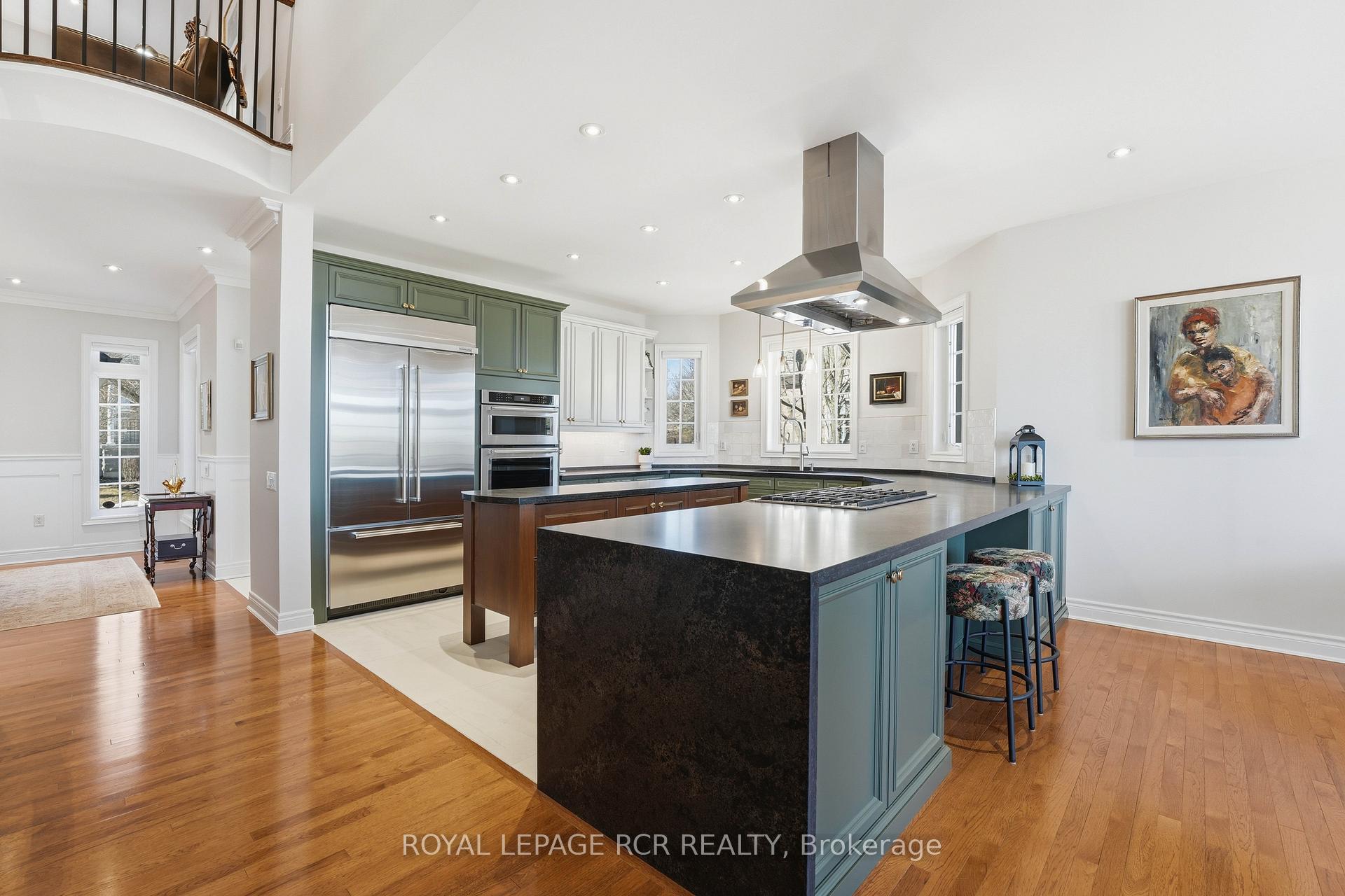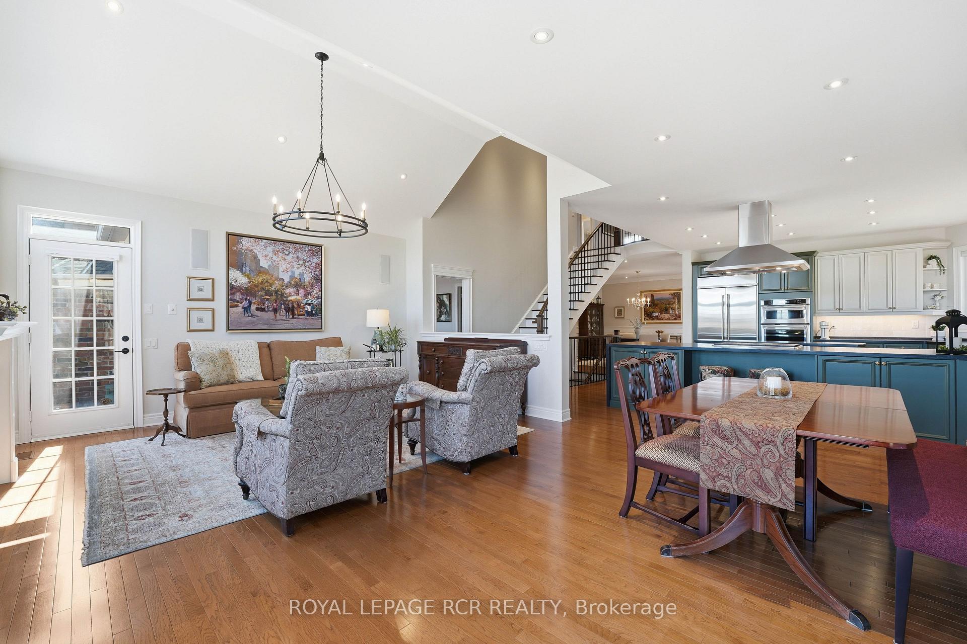An exceptional opportunity to enjoy turnkey living in a quiet, gated community in Aurora, where every detail has been carefully considered - Welcome to 6 Danbrook Court. This well-appointed 3+1 bedroom, 5 bathroom home features an open-concept main level anchored by a vaulted family room with gas fireplace. The kitchen is both stylish and functional, complete with Caesarstone countertops, solid brass hardware, a centre island, and a full suite of KitchenAid appliances. Two dining areas provide flexibility for both cozy dinner parties and larger family gatherings, while the breakfast area walks out to the upper deck for seamless indoor-outdoor flow. The main floor primary suite includes a walk-in closet and a 4-piece ensuite with heated floors. Upstairs, two additional bedrooms, a shared bath, a second family room, and covered deck offer versatile living space. The fully finished walk-out basement expands the living space with a theatre room, a billiards area with wet bar, and a private guest or office suite with a Murphy bed, walk-in closet, and ensuite. Backing onto greenspace, the backyard features a large deck with BBQ gas line and outdoor speakers, lower interlock patio, and landscaped perennial gardens. Complete with a double car garage, main floor laundry, whole-home sound system, and security features, this is low-maintenance luxury living without compromise.