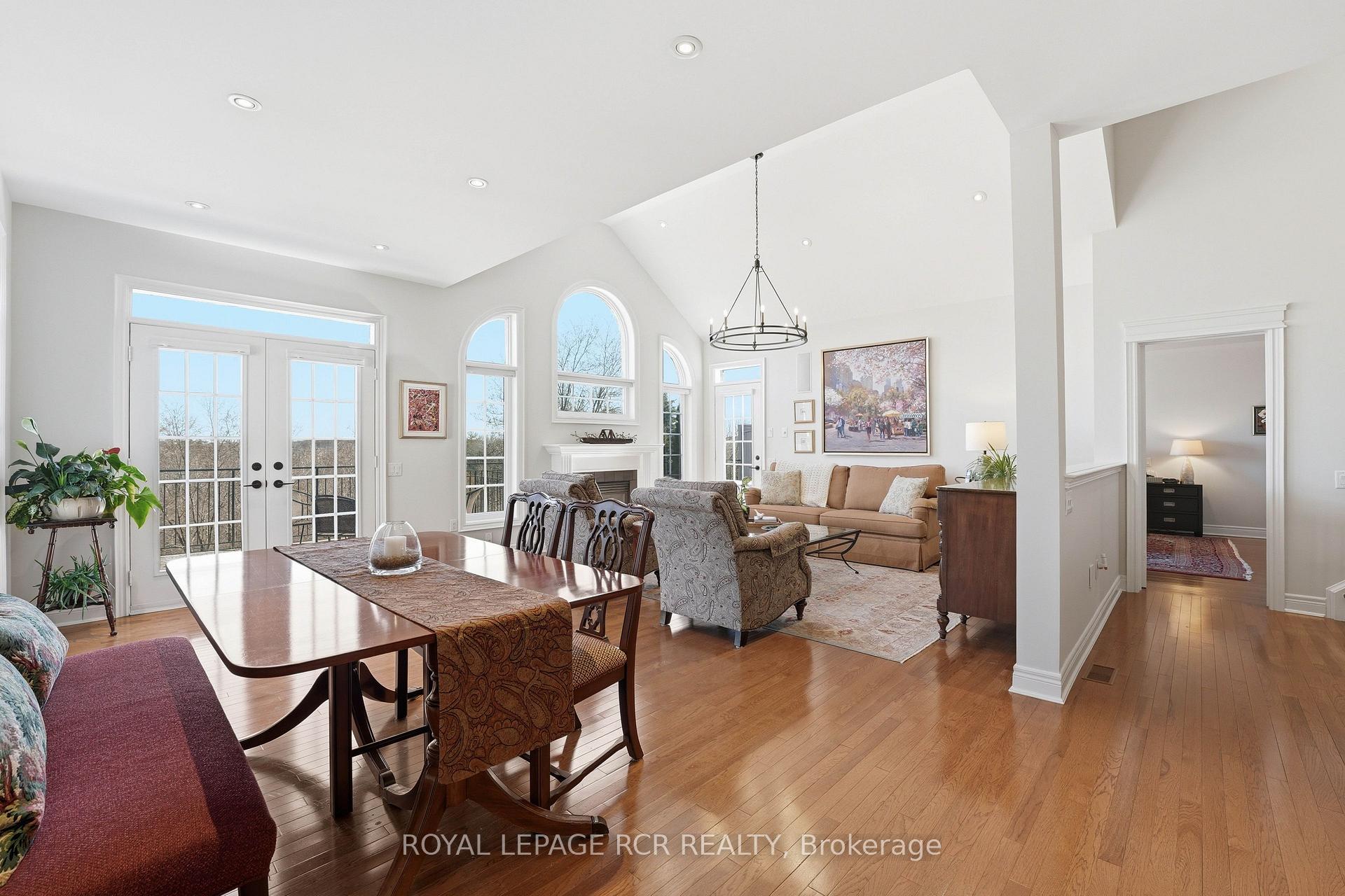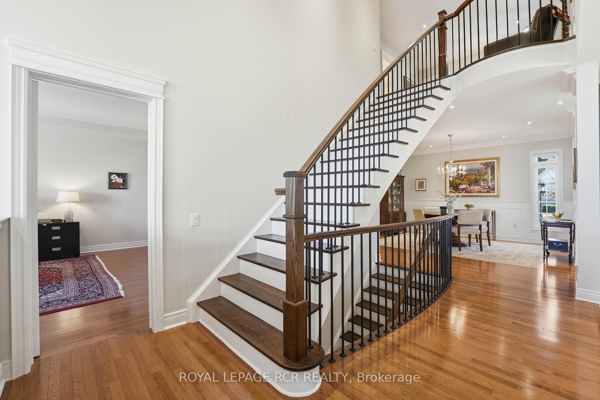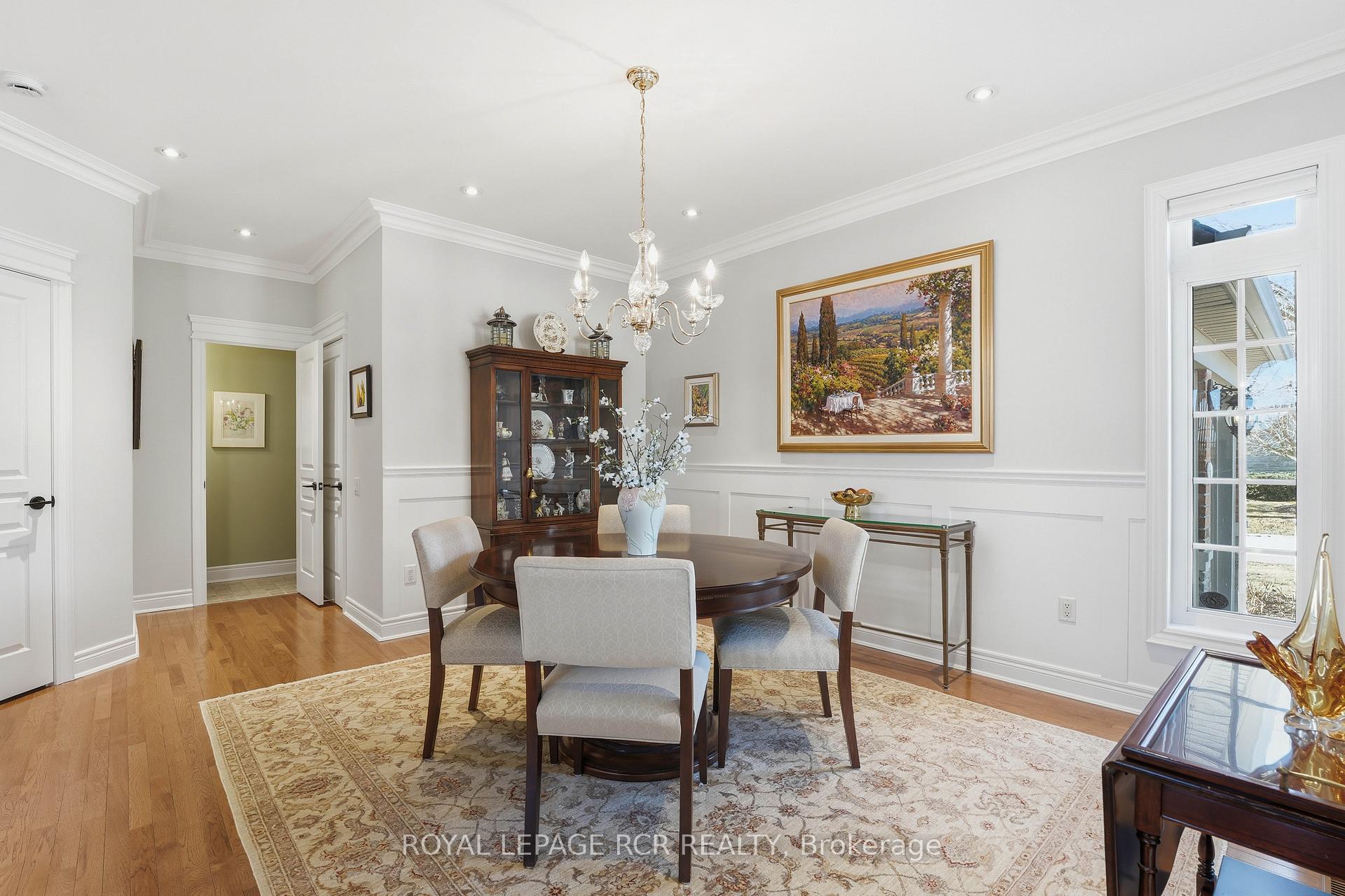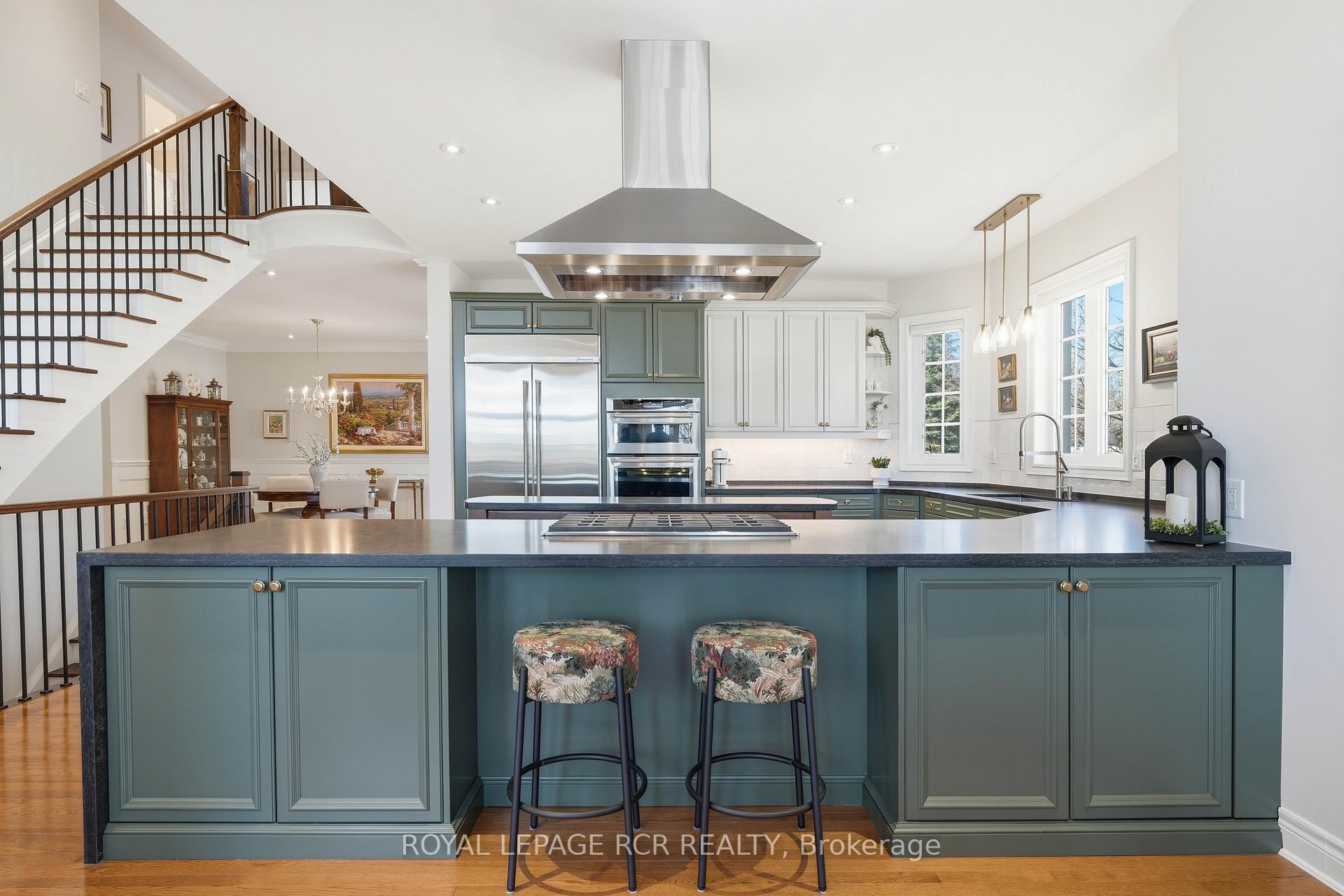 An exceptional opportunity to enjoy turnkey living in a quiet, gated community in Aurora, where every detail has been carefully considered - Welcome to 6 Danbrook Court. This well-appointed 3+1 bedroom, 5 bathroom home features an open-concept main level anchored by a vaulted family room with gas fireplace. The kitchen is both stylish and functional, complete with Caesarstone countertops, solid brass hardware, a centre island, and a full suite of KitchenAid appliances. Two dining areas provide flexibility for both cozy dinner parties and larger family gatherings, while the breakfast area walks out to the upper deck for seamless indoor-outdoor flow. The main floor primary suite includes a walk-in closet and a 4-piece ensuite with heated floors. Upstairs, two additional bedrooms, a shared bath, a second family room, and covered deck offer versatile living space. The fully finished walk-out basement expands the living space with a theatre room, a billiards area with wet bar, and a private guest or office suite with a Murphy bed, walk-in closet, and ensuite. Backing onto greenspace, the backyard features a large deck with BBQ gas line and outdoor speakers, lower interlock patio, and landscaped perennial gardens. Complete with a double car garage, main floor laundry, whole-home sound system, and security features, this is low-maintenance luxury living without compromise.