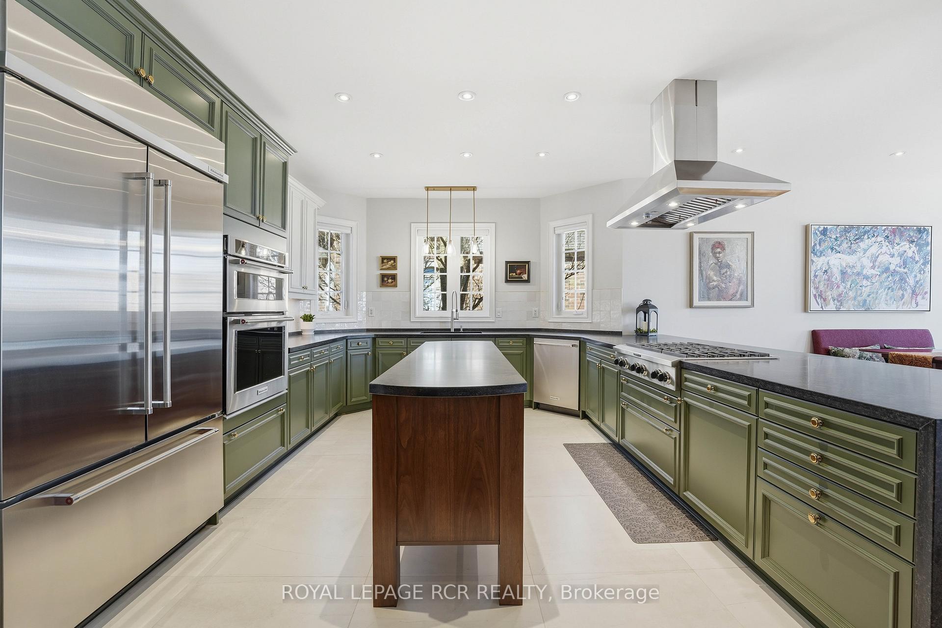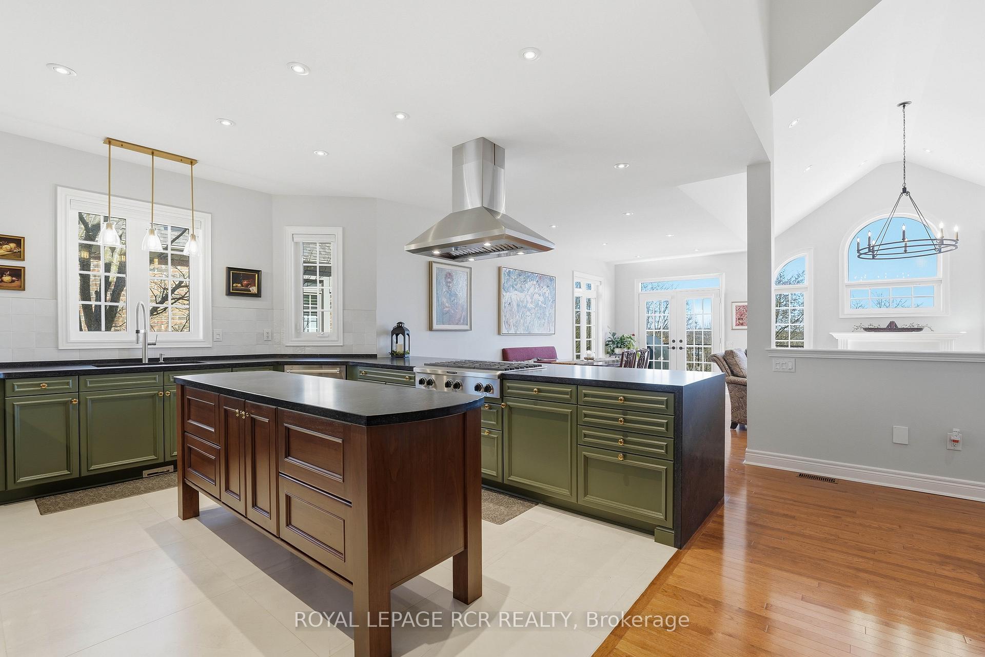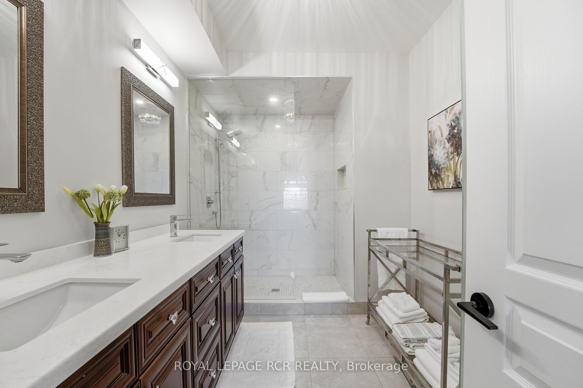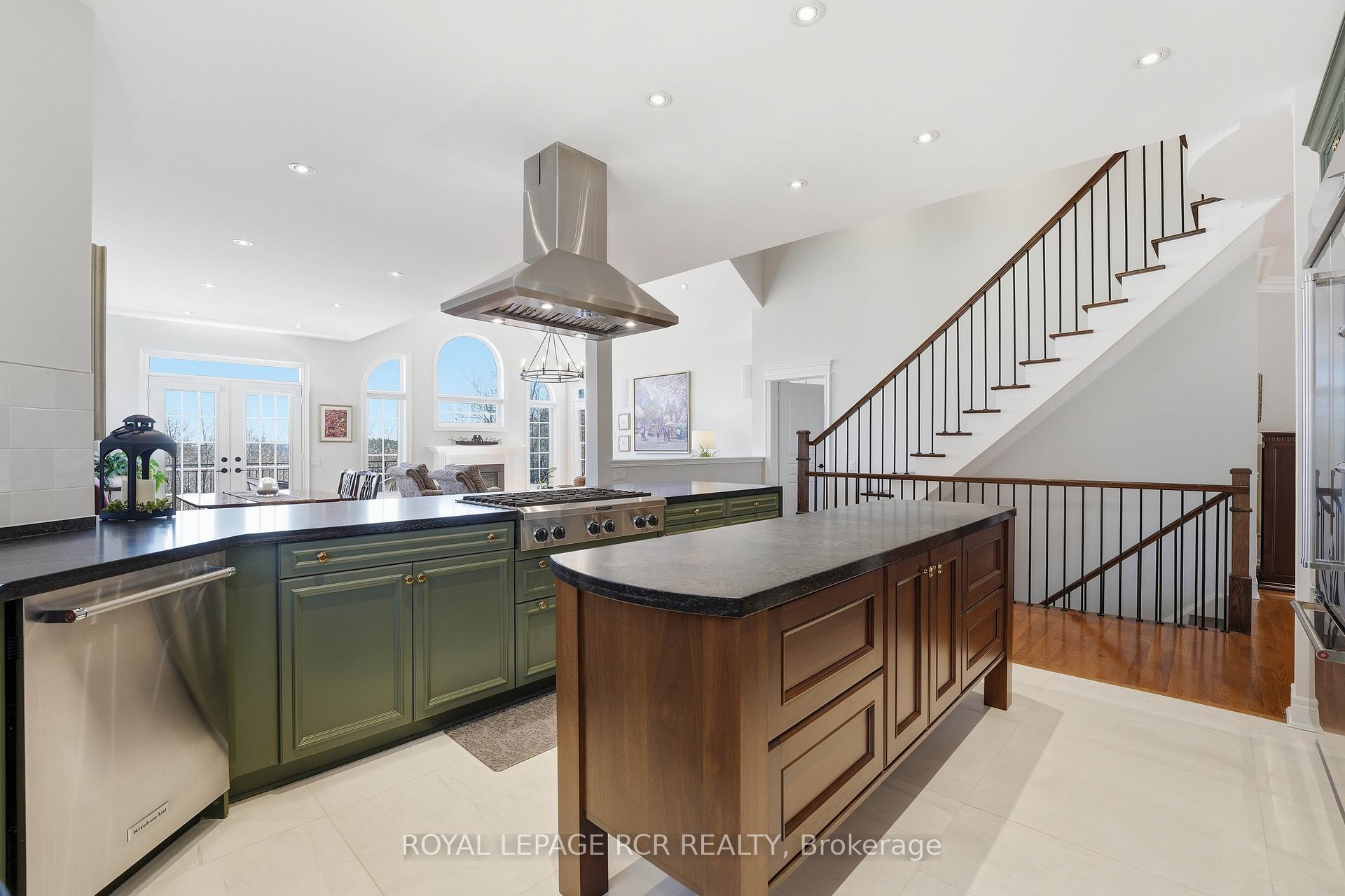 An exceptional opportunity to enjoy turnkey living in a quiet, gated community in Aurora, where every detail has been carefully considered - Welcome to 6 Danbrook Court. This well-appointed 3+1 bedroom, 5 bathroom home features an open-concept main level anchored by a vaulted family room with gas fireplace. The kitchen is both stylish and functional, complete with Caesarstone countertops, solid brass hardware, a centre island, and a full suite of KitchenAid appliances. Two dining areas provide flexibility for both cozy dinner parties and larger family gatherings, while the breakfast area walks out to the upper deck for seamless indoor-outdoor flow. The main floor primary suite includes a walk-in closet and a 4-piece ensuite with heated floors. Upstairs, two additional bedrooms, a shared bath, a second family room, and covered deck offer versatile living space. The fully finished walk-out basement expands the living space with a theatre room, a billiards area with wet bar, and a private guest or office suite with a Murphy bed, walk-in closet, and ensuite. Backing onto greenspace, the backyard features a large deck with BBQ gas line and outdoor speakers, lower interlock patio, and landscaped perennial gardens. Complete with a double car garage, main floor laundry, whole-home sound system, and security features, this is low-maintenance luxury living without compromise.