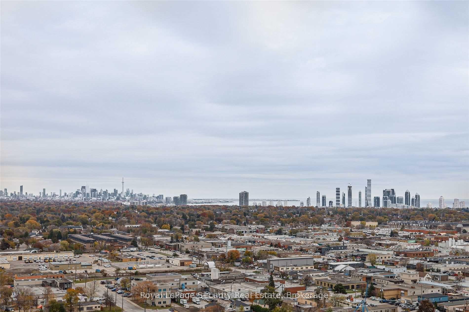 Enjoy breathtaking south-facing views from the 23rd floor of this stunning and spacious condo. Featuring an open-concept layout filled with natural light, this unit offers comfortable living and modern appeal. The generously sized primary bedroom includes a walk-in closet and direct access to a large private balcony - perfect for morning coffee or evening relaxation. Unbeatable location just a 2-minute walk to Kipling Station, with quick access to major highways, shopping, dining, and only minutes to Toronto Pearson International Airport. The unit will be professionally cleaned prior to possession. Smoke-free building. No dogs permitted.