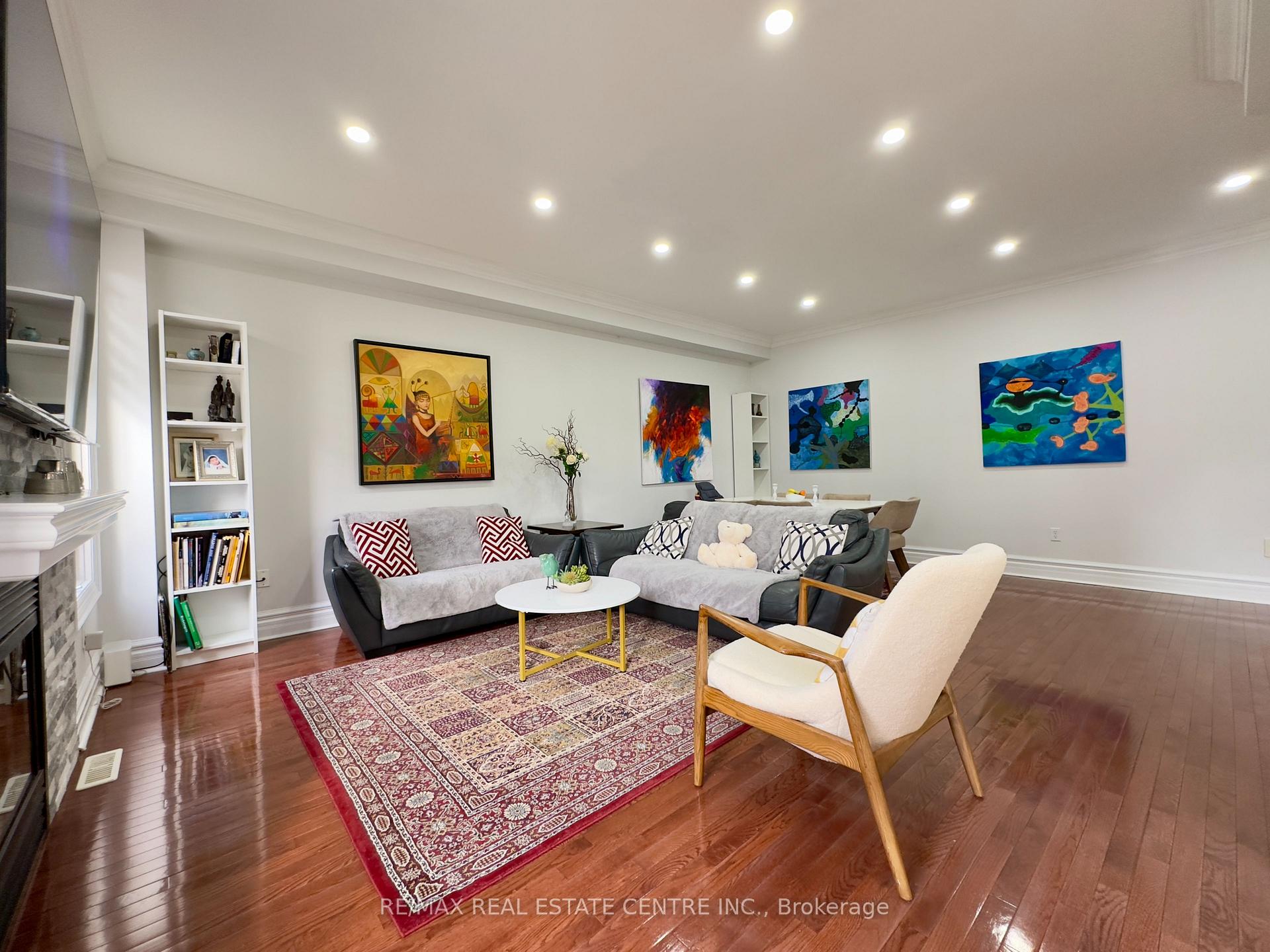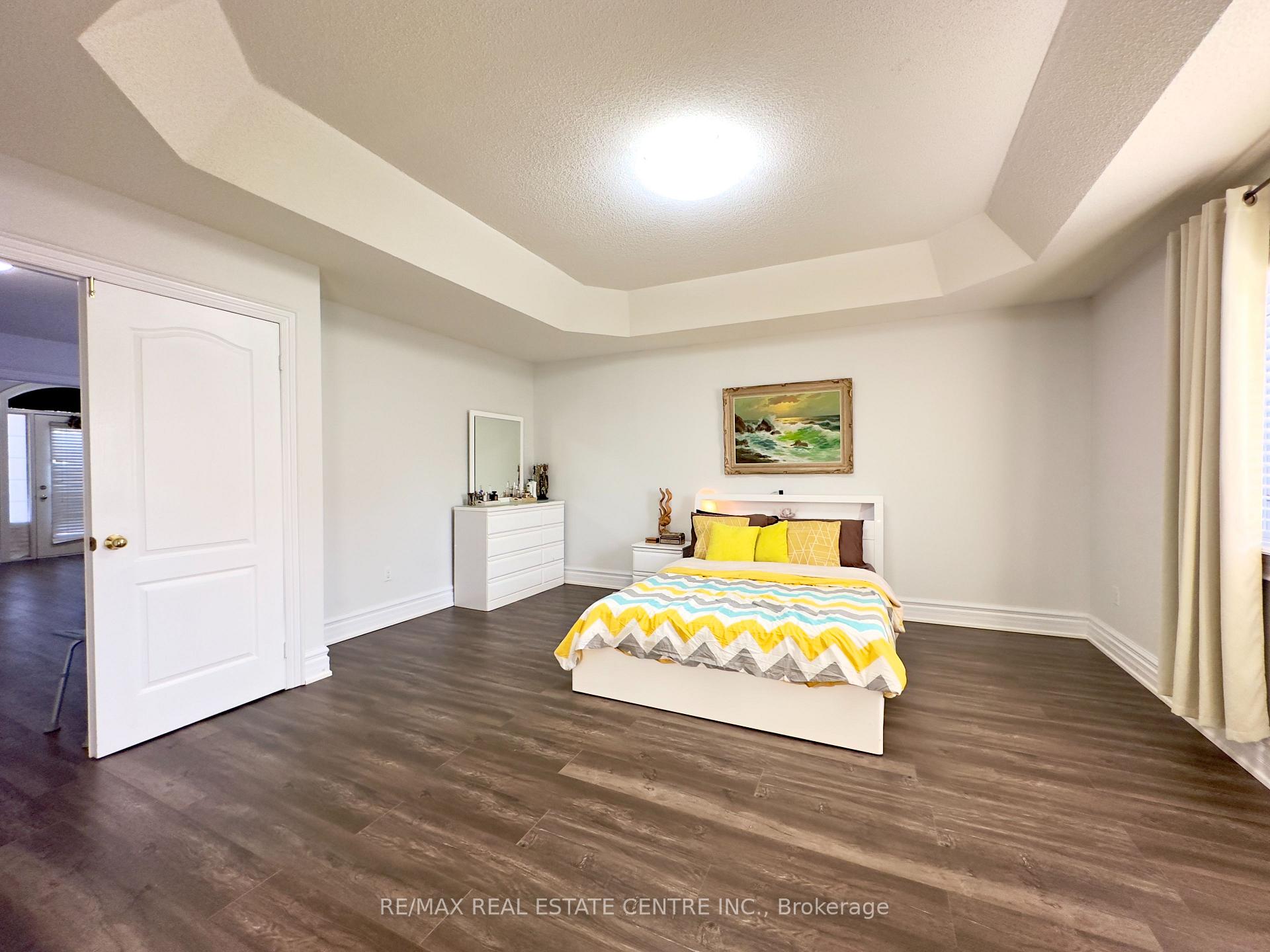Finished Legal Basement ! This beautifully maintained home offers double door entry with an inviting foyer featuring pot lights leading to an expansive living room, with oak plank floors and a stunning solid oak staircase. The primary bedroom boasts its own double door entry and luxurious 5-piece ensuite, while the second bedroom offers a walk-out balcony for added charm. Upstairs, enjoy the convenience of a dedicated laundry room. The gourmet kitchen is complete with upgraded cabinetry, stainless steel appliances, and a large granite breakfast bar, perfect for casual dining. Cozy up to a custom fireplace framed by an accent stone wall in the living area. City approved Legal basement with separate entrance offers even more living space, featuring a large window, two bedrooms, two 3-piece washrooms, and a fully equipped kitchen with stacked laundry. Parking is a breeze with a double car garage and space for up to four more vehicles in the driveway. Located close to Highway 410 and Trinity Mall, this home combines convenience with elegant living.